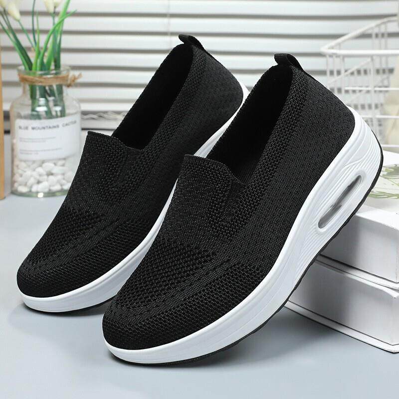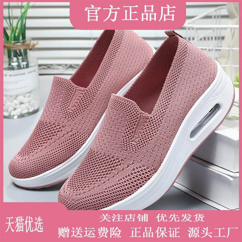 梅尔服饰春季鞋子女春季新款一脚蹬妈妈鞋透气飞织缓震气垫女单鞋