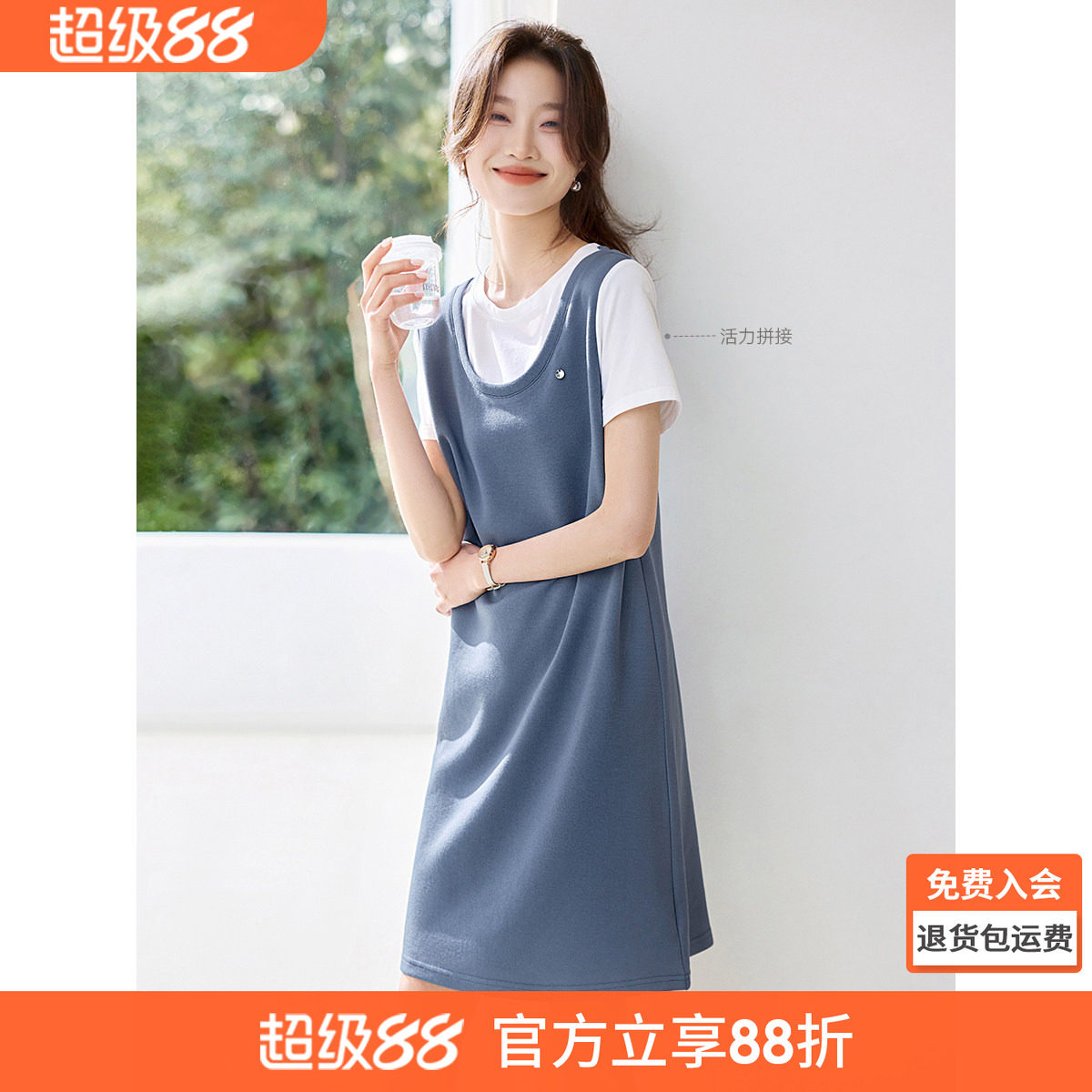 --------------------- 沫晗依美减龄休闲圆领假两件撞色拼接直筒连衣裙2026夏季新款裙子 --------------------- --------------------- 【原价】159元 【券后价】93元