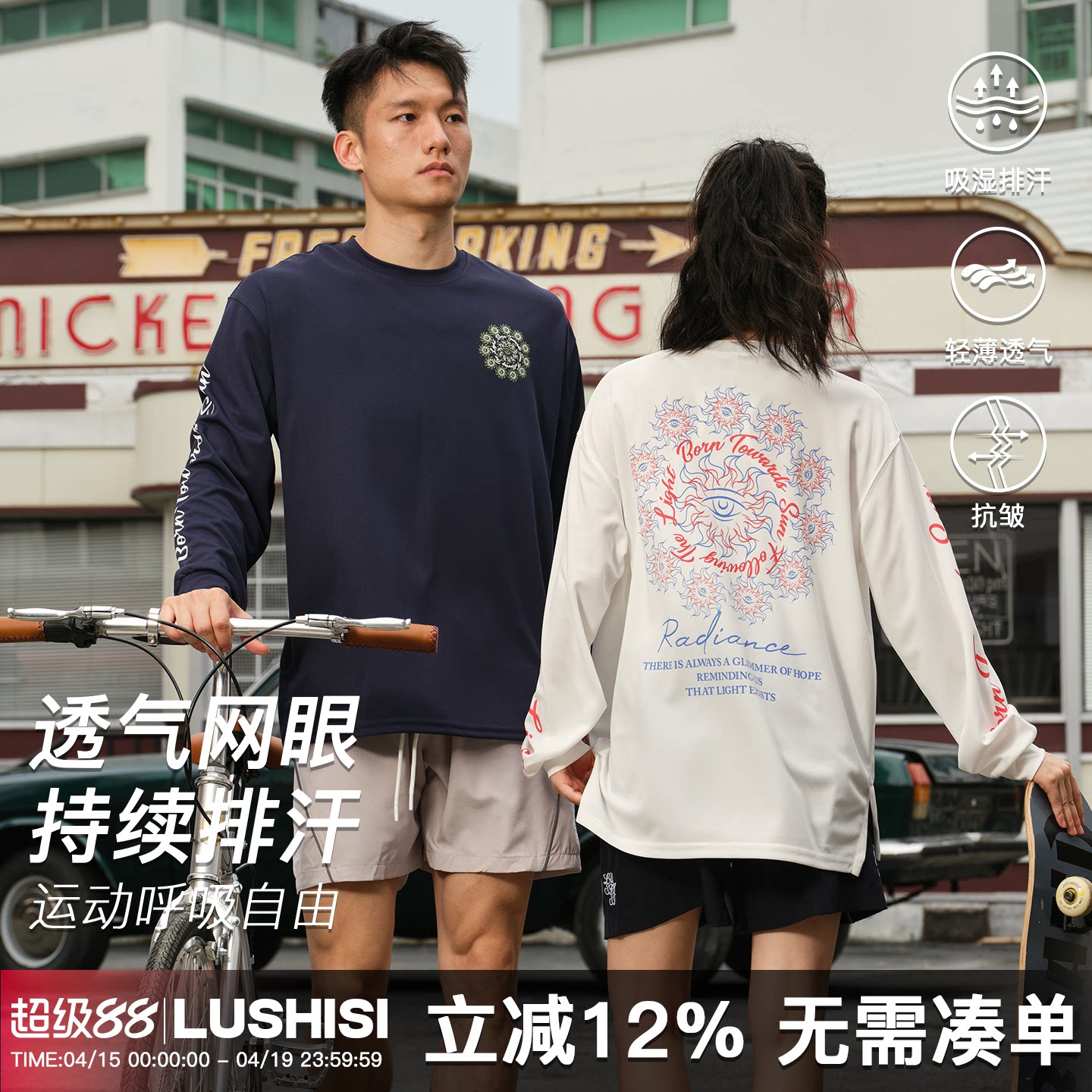 --------------------- 录士LUSHISI向阳而生主题休闲运动潮流圆领t恤投篮服美式长袖透气 【原售价】99元 【现售价】87.1元 【推荐理由】