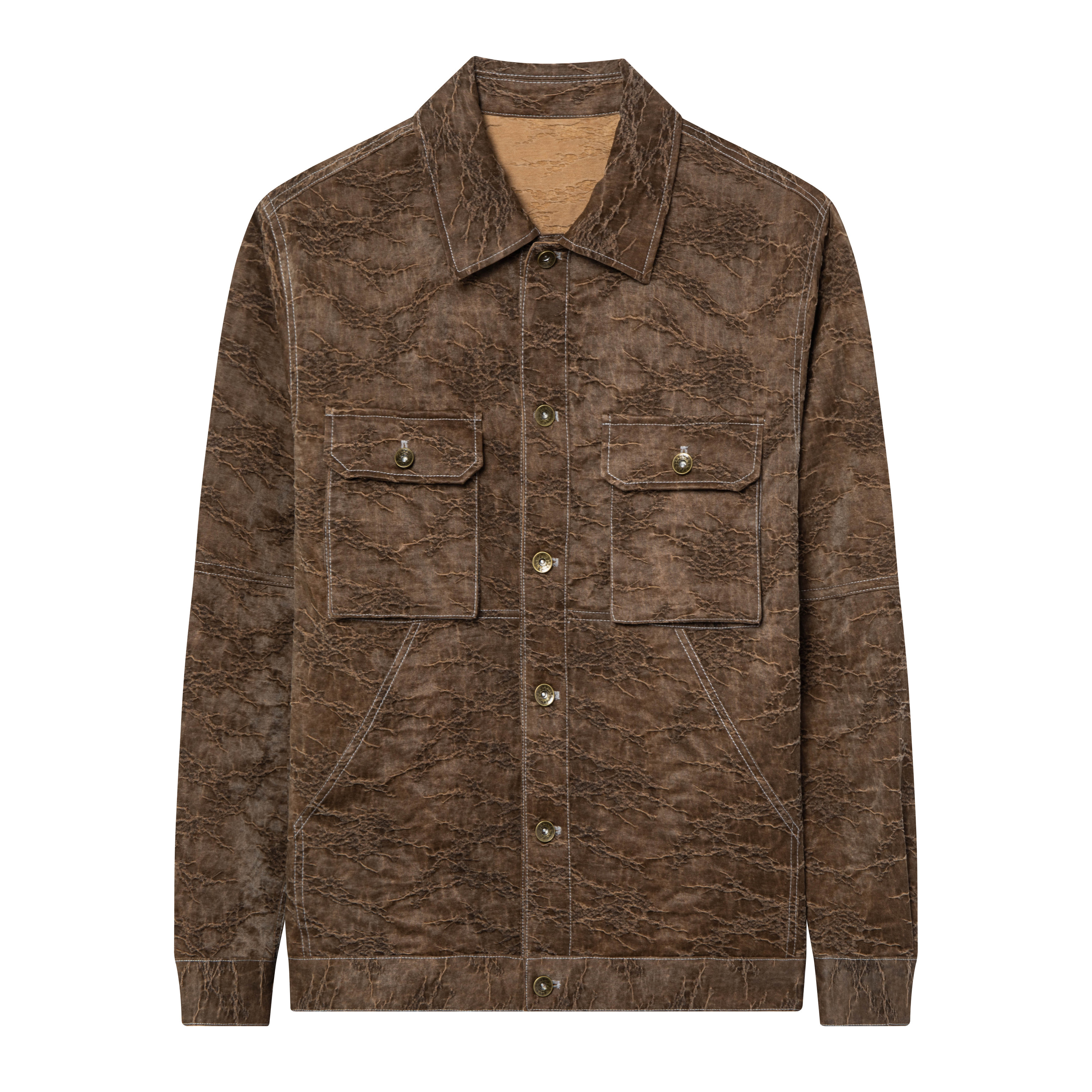 狄斯仑轻奢桑蚕丝外套男士裂纹工装翻领夹克帅气多口袋国潮风上衣