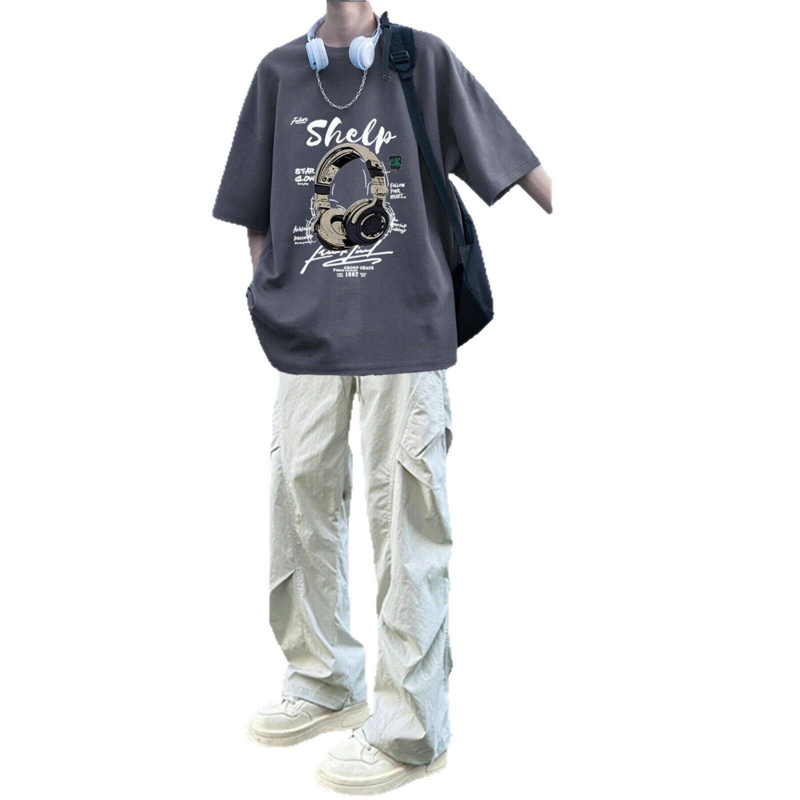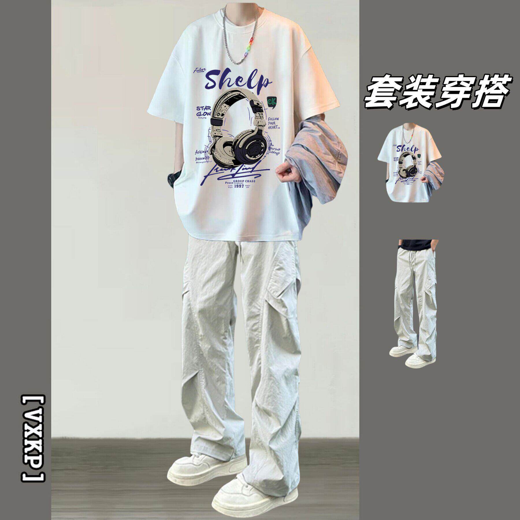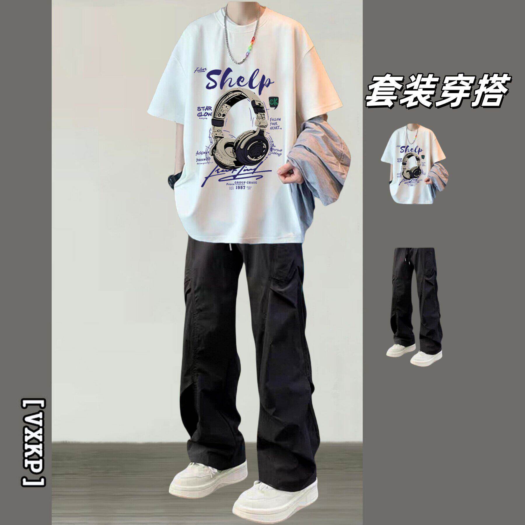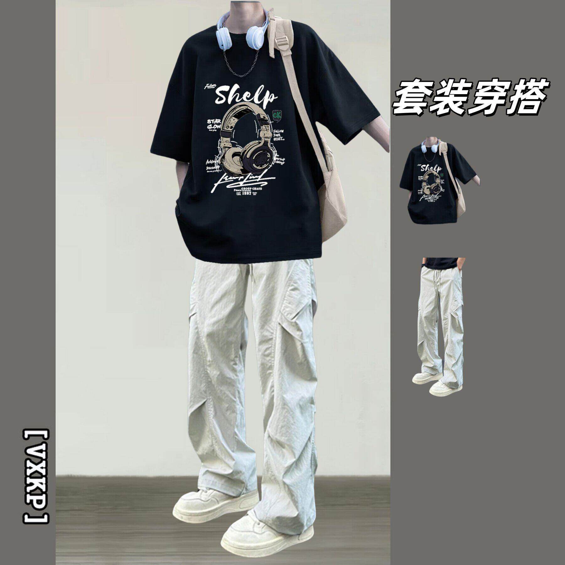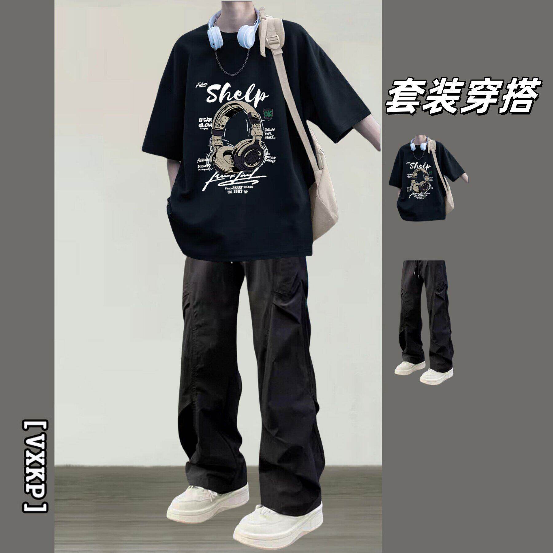 BENTIDEA 潮牌短袖T恤男夏季套装青少年学生印花上衣搭配休闲裤