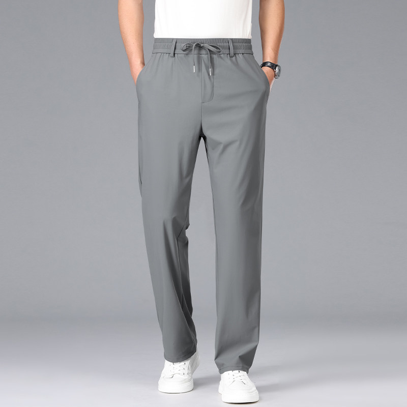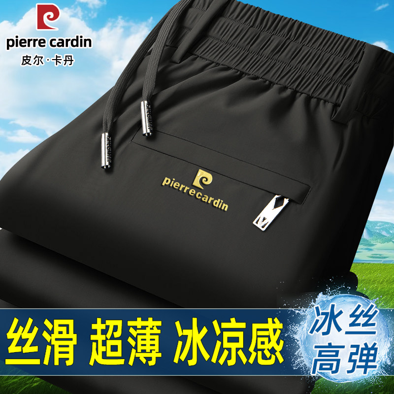 皮尔卡丹裤子男夏季薄款休闲裤高弹力冰丝运动裤直筒宽松爸爸男裤