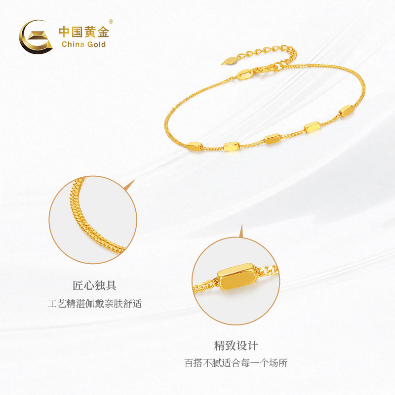 【中国黄金官方店】黄金手链5G小方块足金手链新品百搭
