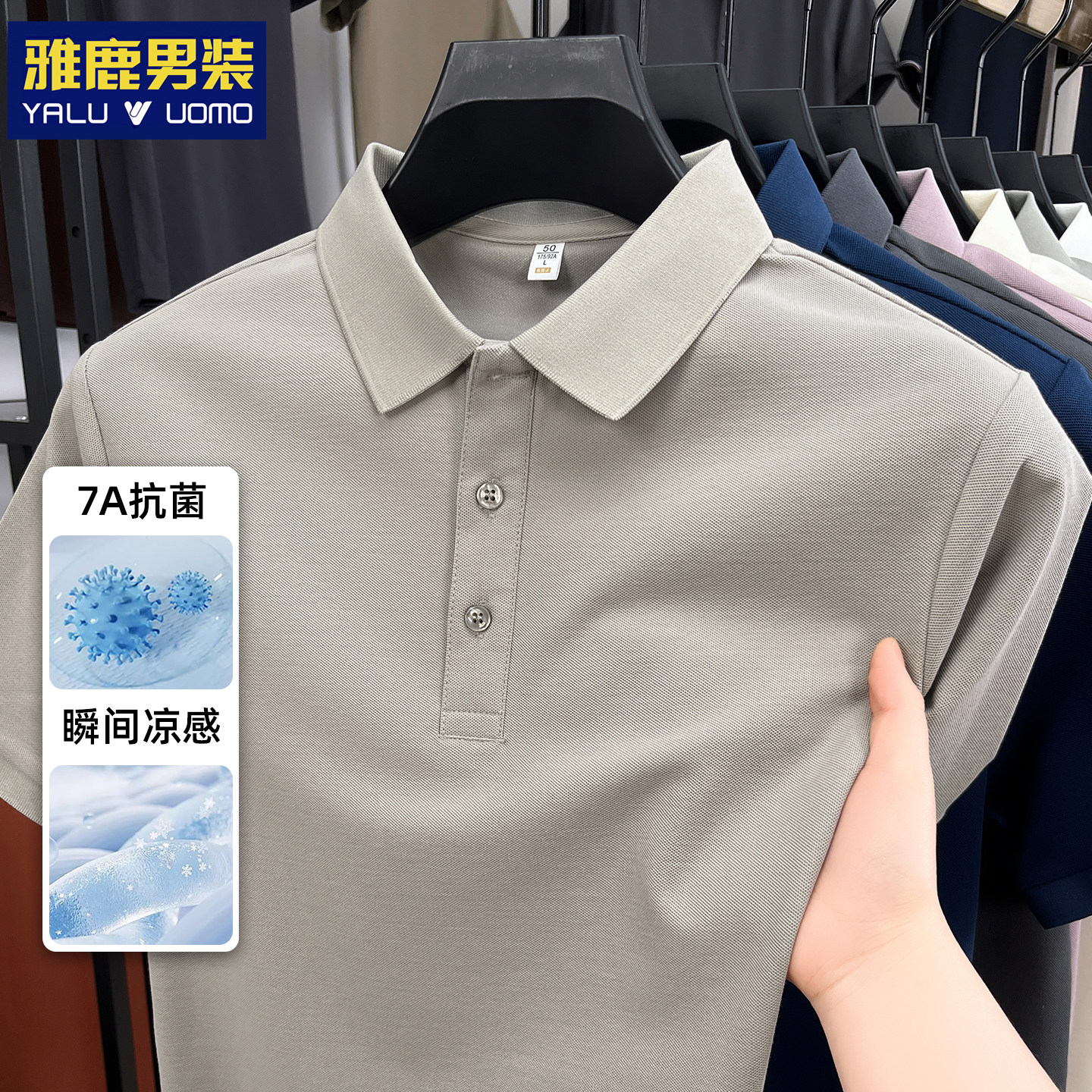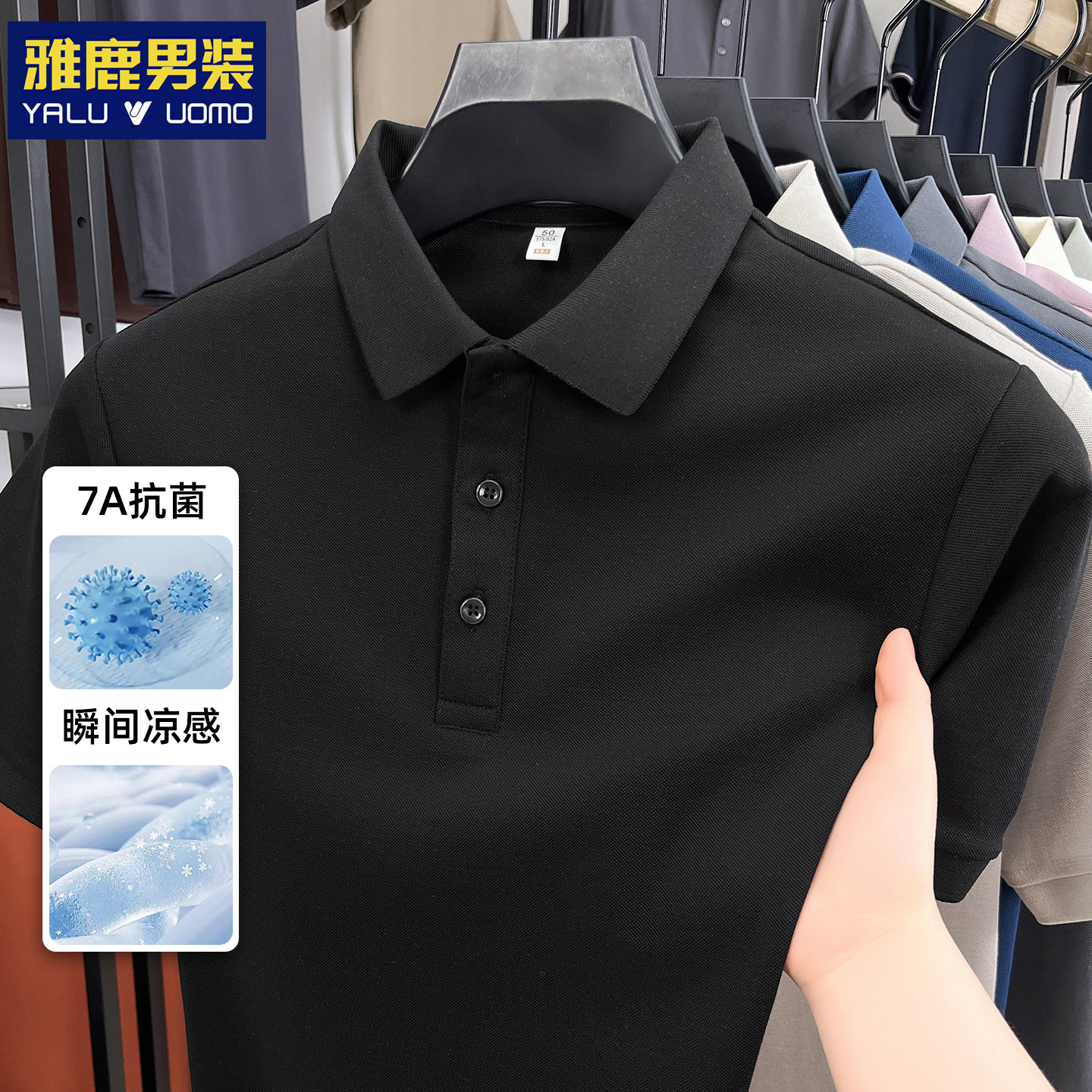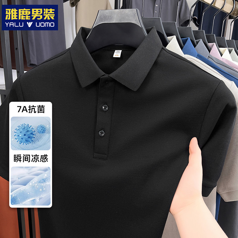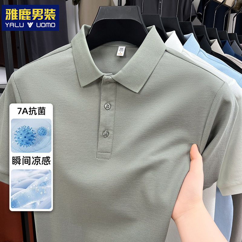 雅鹿男装男士短袖polo衫高品质索罗娜商务新疆棉重磅翻领纯色t恤