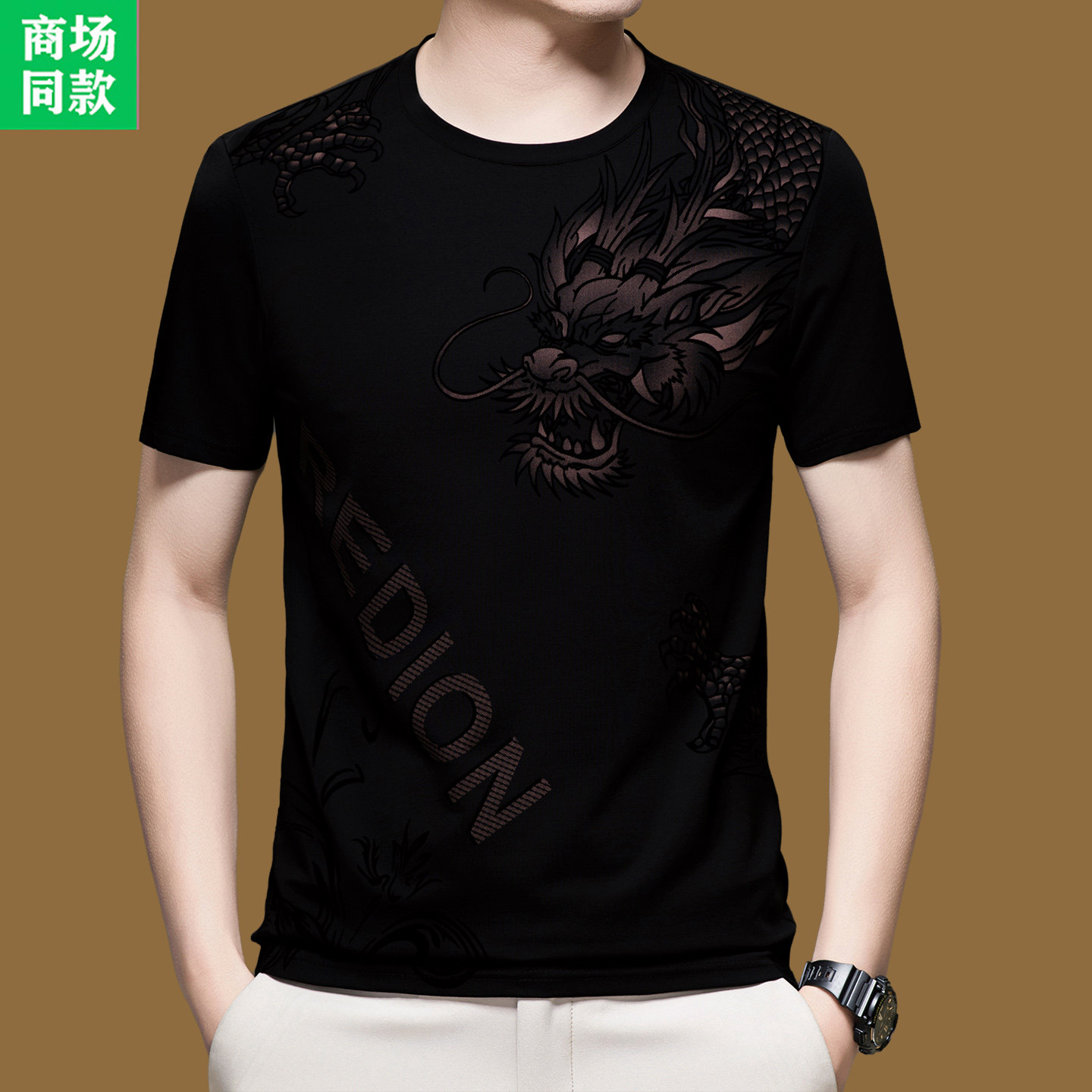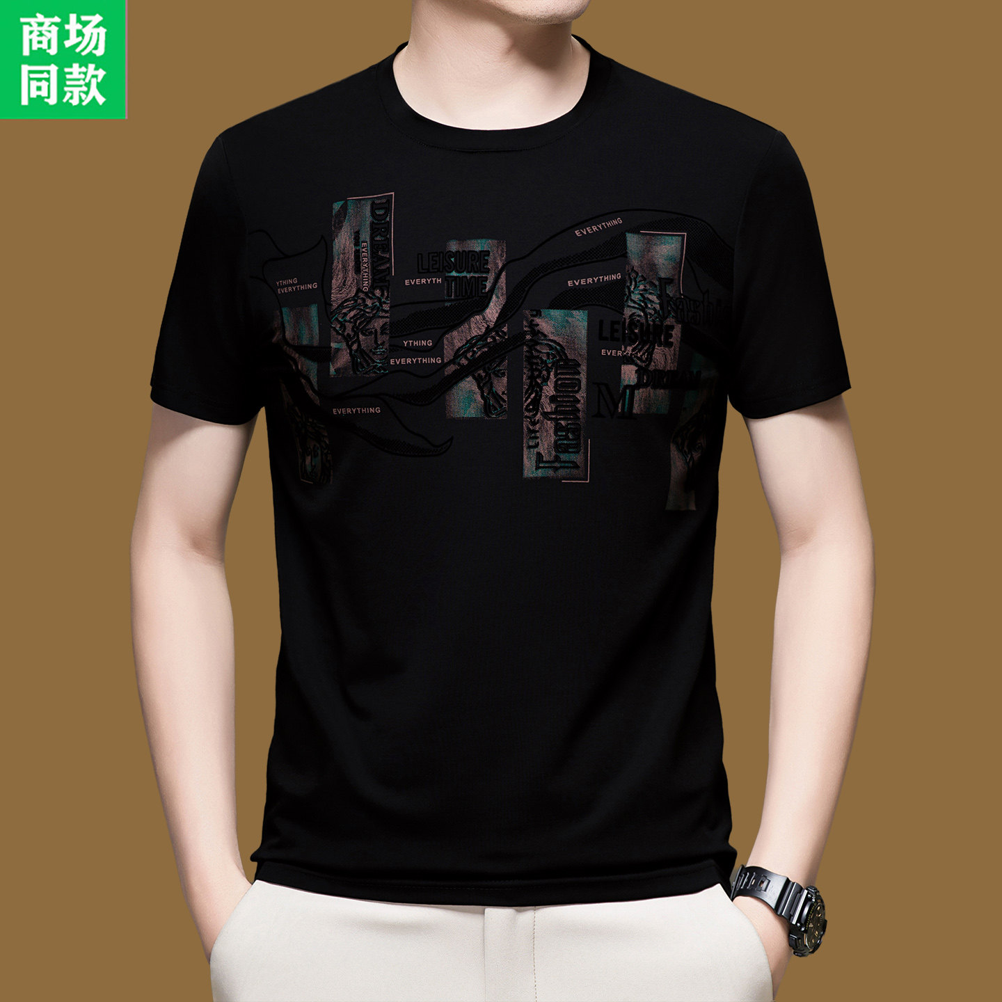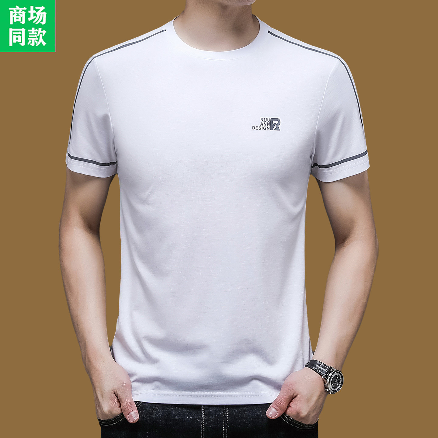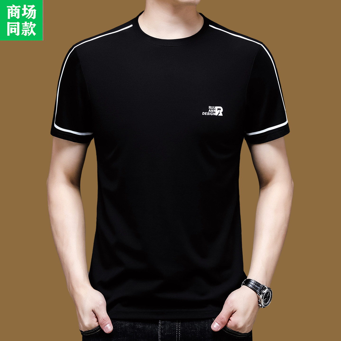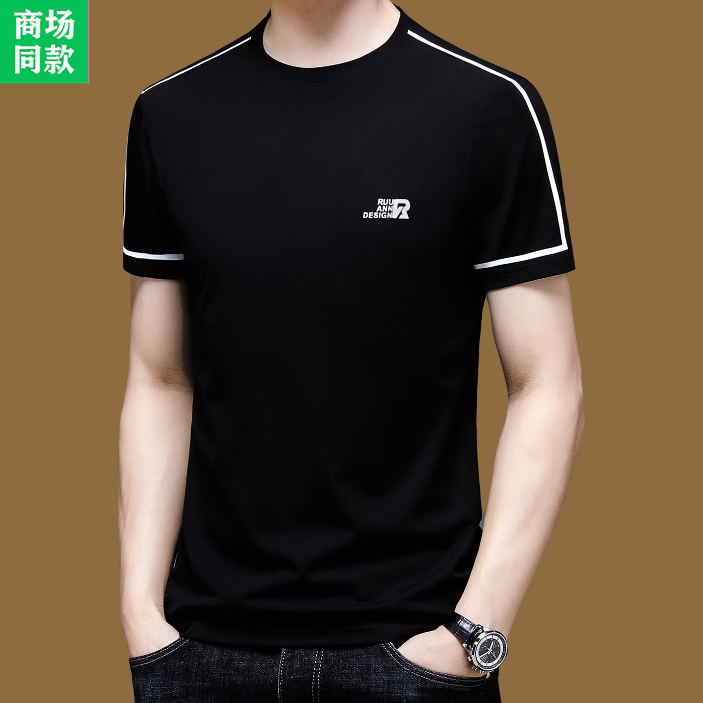 淘宝正品意大利桑蚕丝短袖t恤男士圆领新款简约潮流透气吸汗上衣