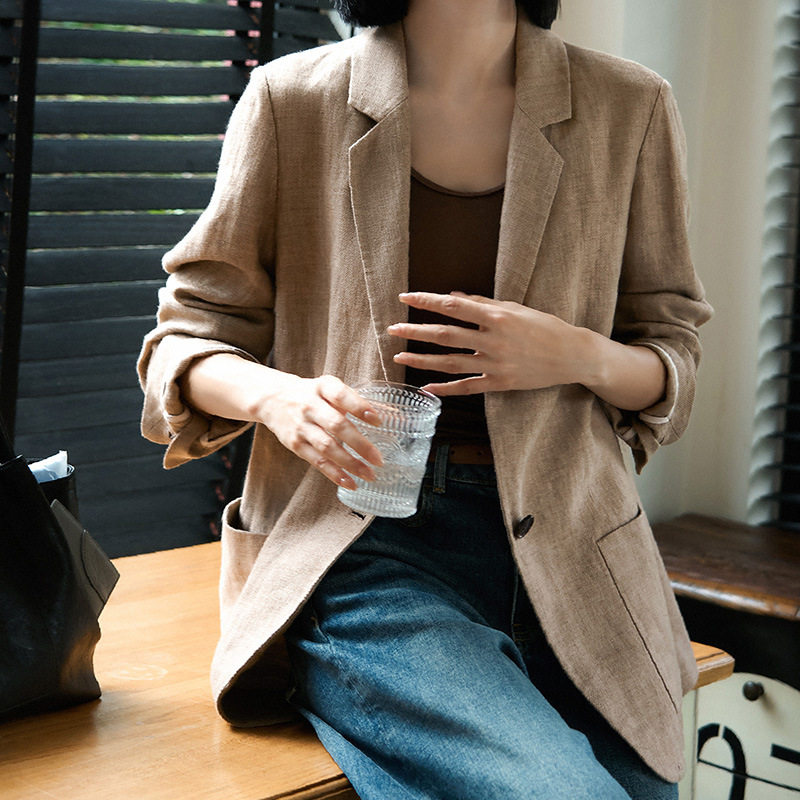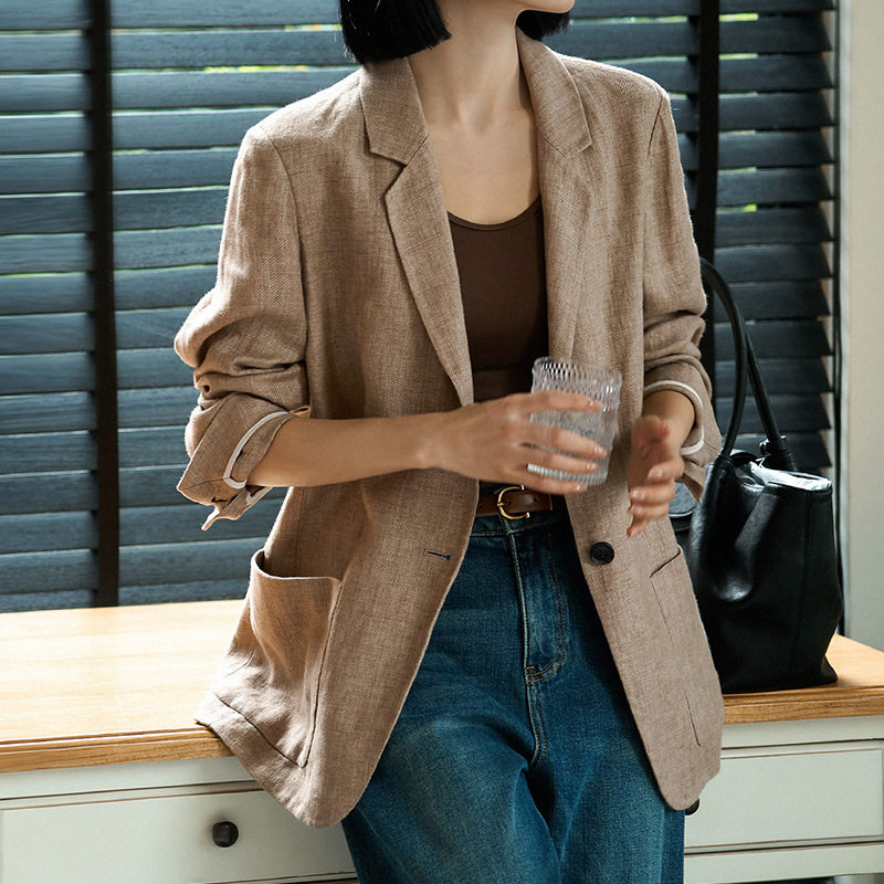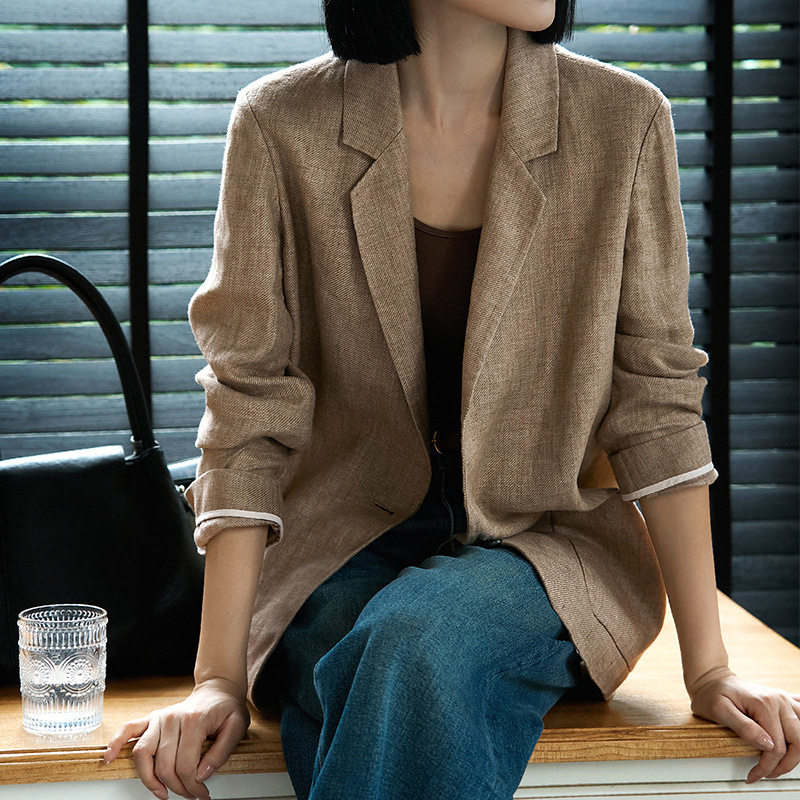 淘宝智美松弛!老钱风呼吸感亚麻廓形西装 秋季新款气质优雅质感外套