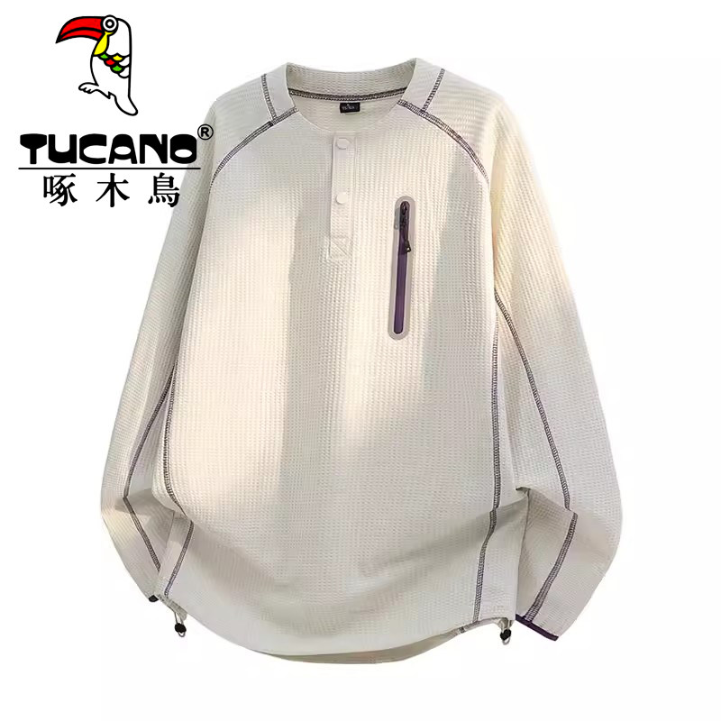 啄木鸟卫衣男春秋季新款半开襟套头青少年宽松华夫格休闲长袖T恤