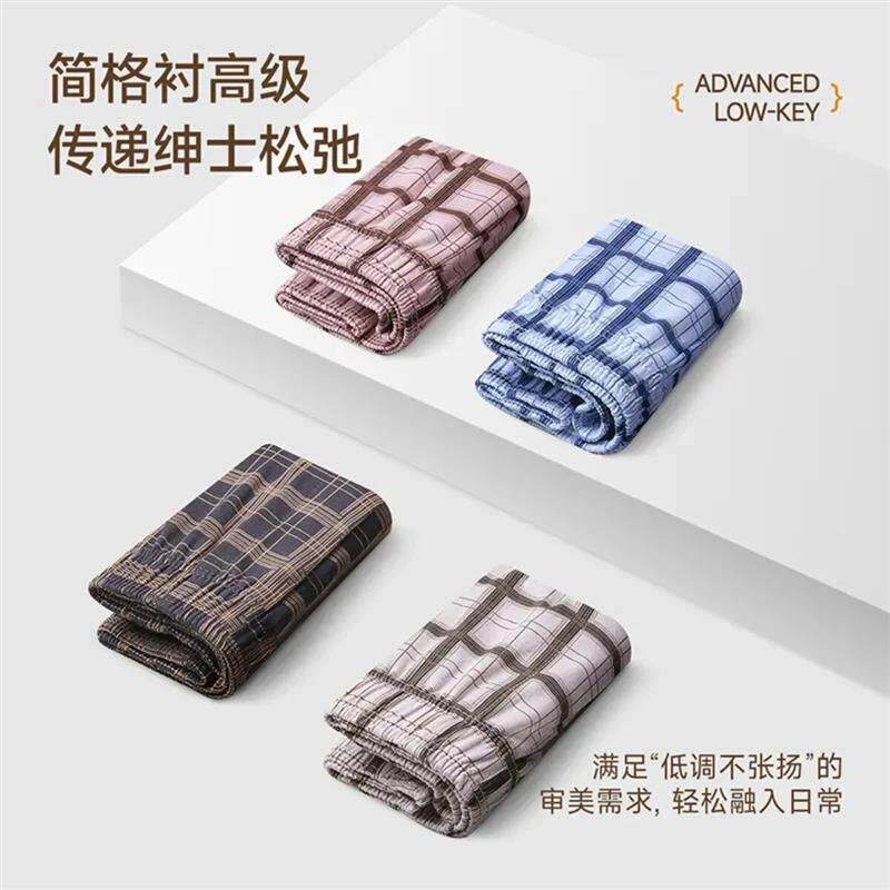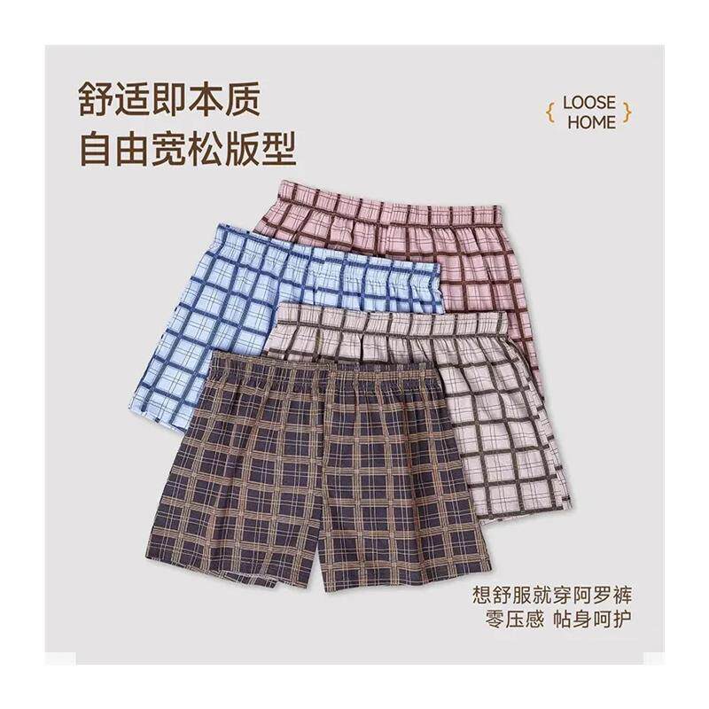 鼎繁精选2男士内裤阿罗裤棉格子休闲大码睡裤居家四角大裤衩1