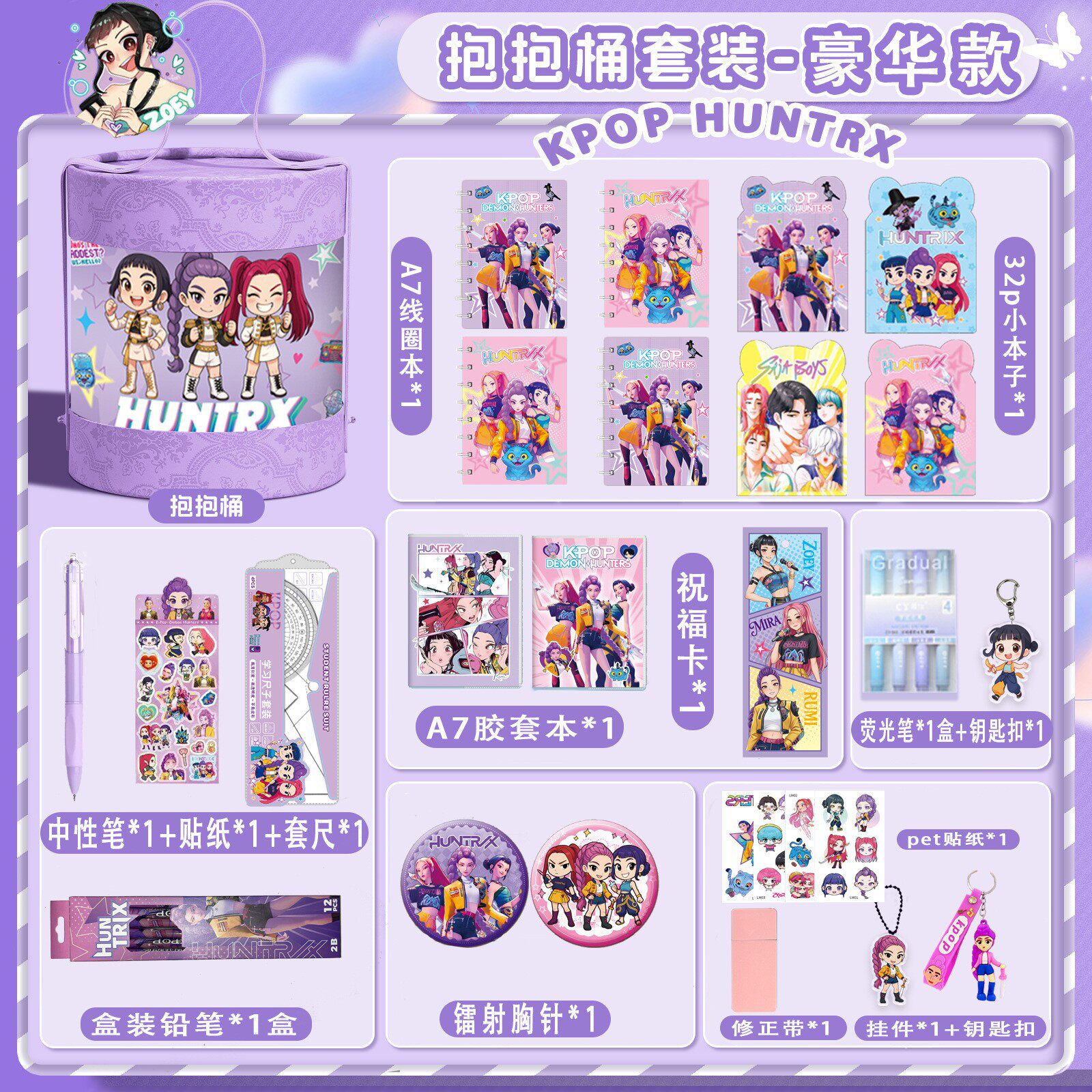 --------------------- 新款礼物kpop猎魔女团系列抱抱桶贴纸挂件文具惊喜盲盒大礼包女孩 【原售价】49.8元 【现售价】35元 【推荐理由】
