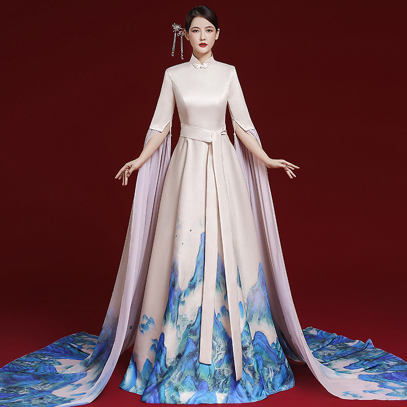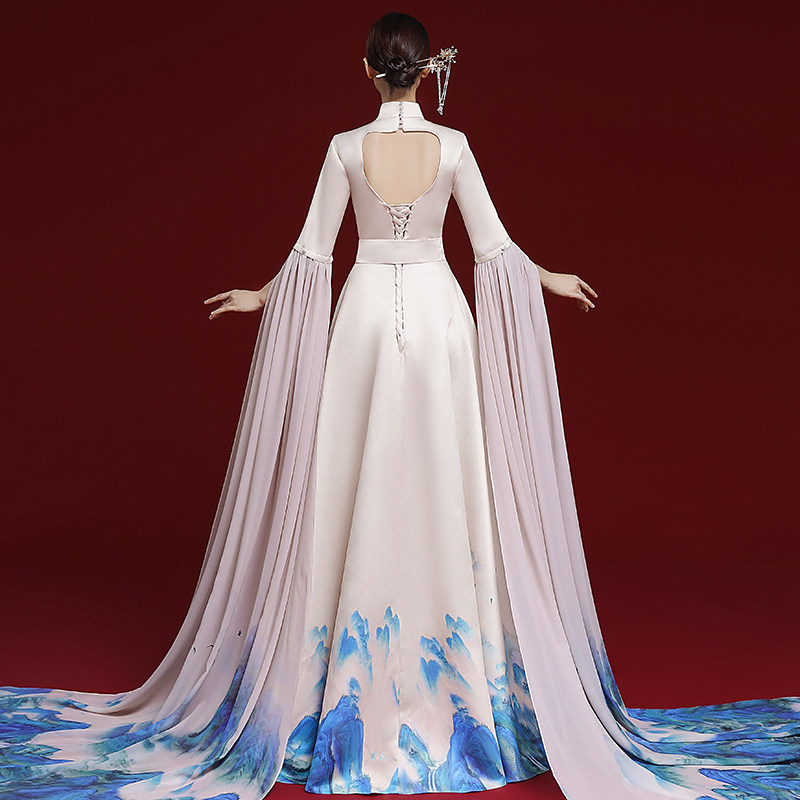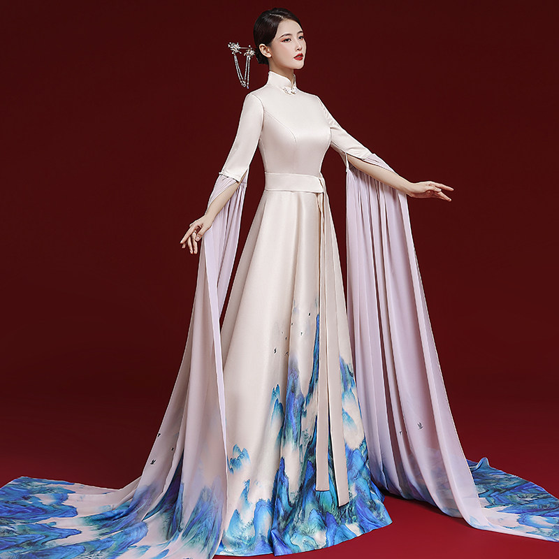 中国风旗袍秀走秀高端演出服艺考声乐高级感古筝演奏主持人礼服女