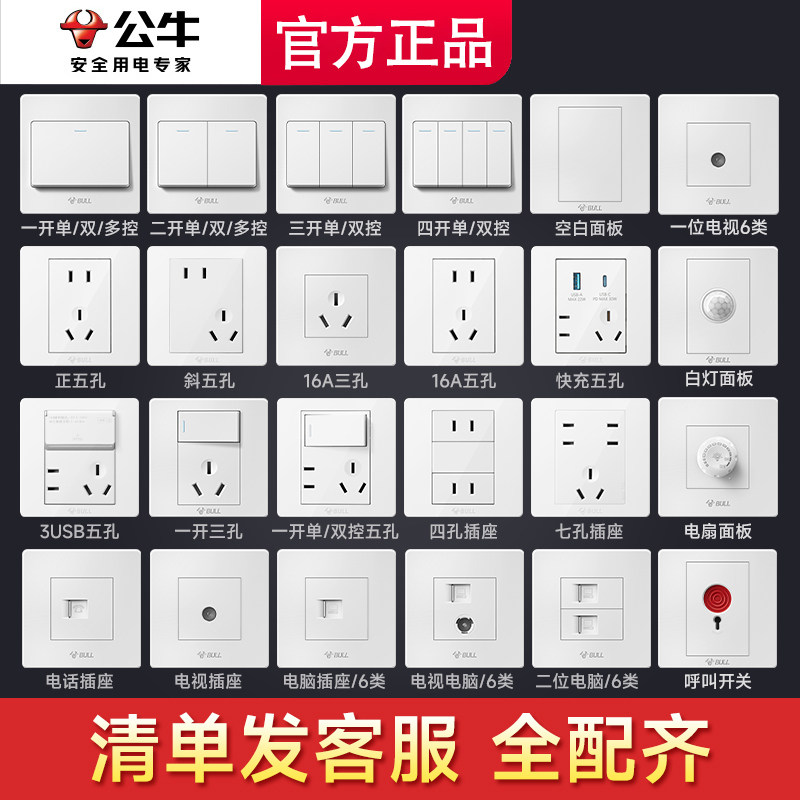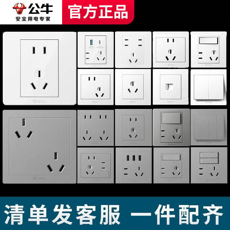 公牛开关插座面板官方旗舰店正品家用五孔墙壁墙上暗装g07象牙白