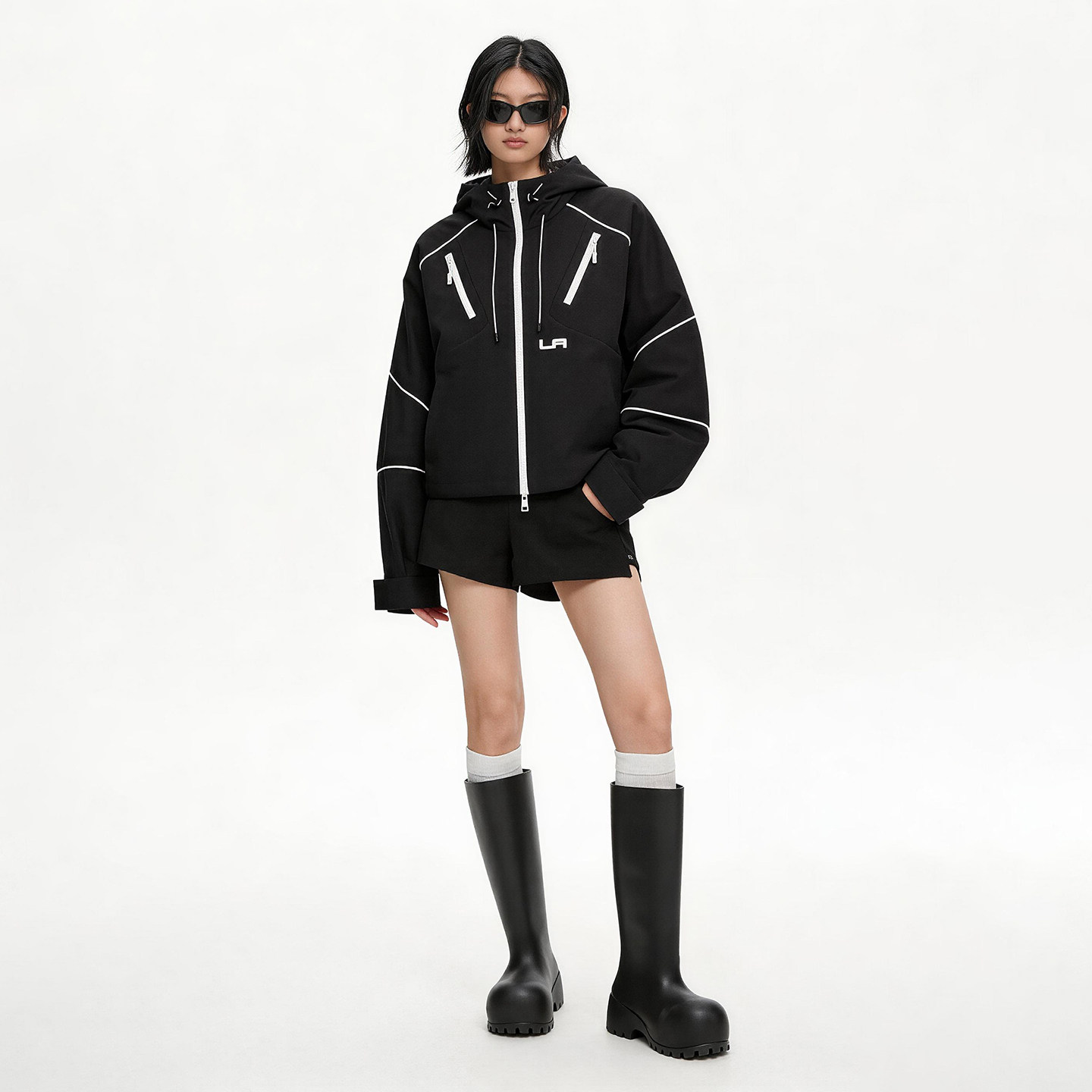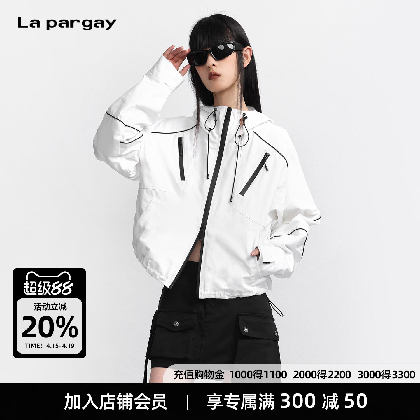 --------------------- Lapargay 撞色宽松休闲短外套 拉链装饰设计 连帽上衣L78101228S 【原售价】1561元 【现售价】1248元 【推荐理由】