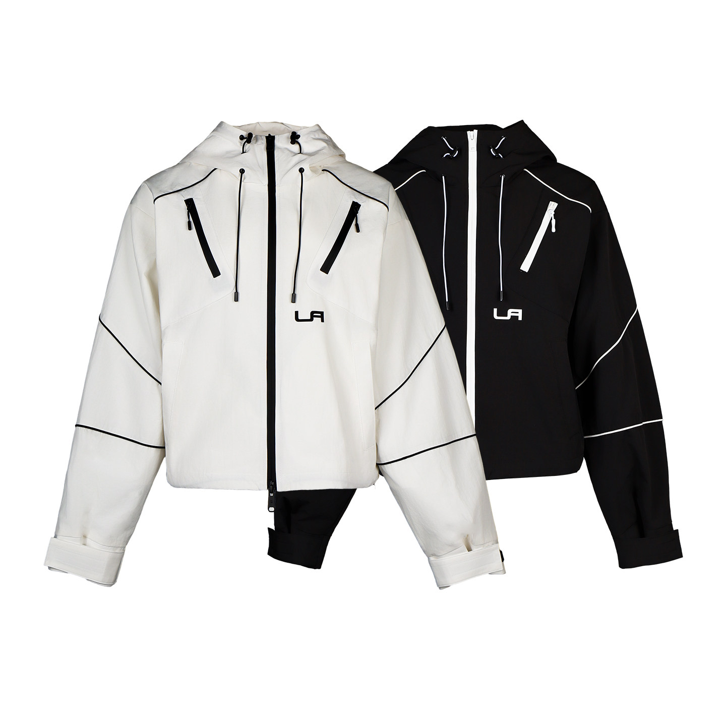 Lapargay 撞色宽松休闲短外套 拉链装饰设计 连帽上衣L78101228S