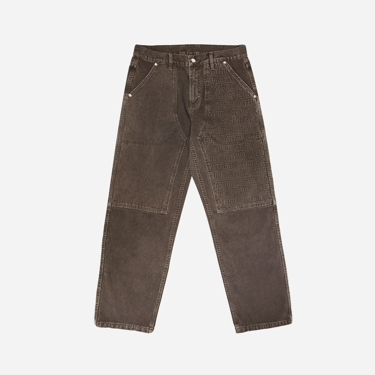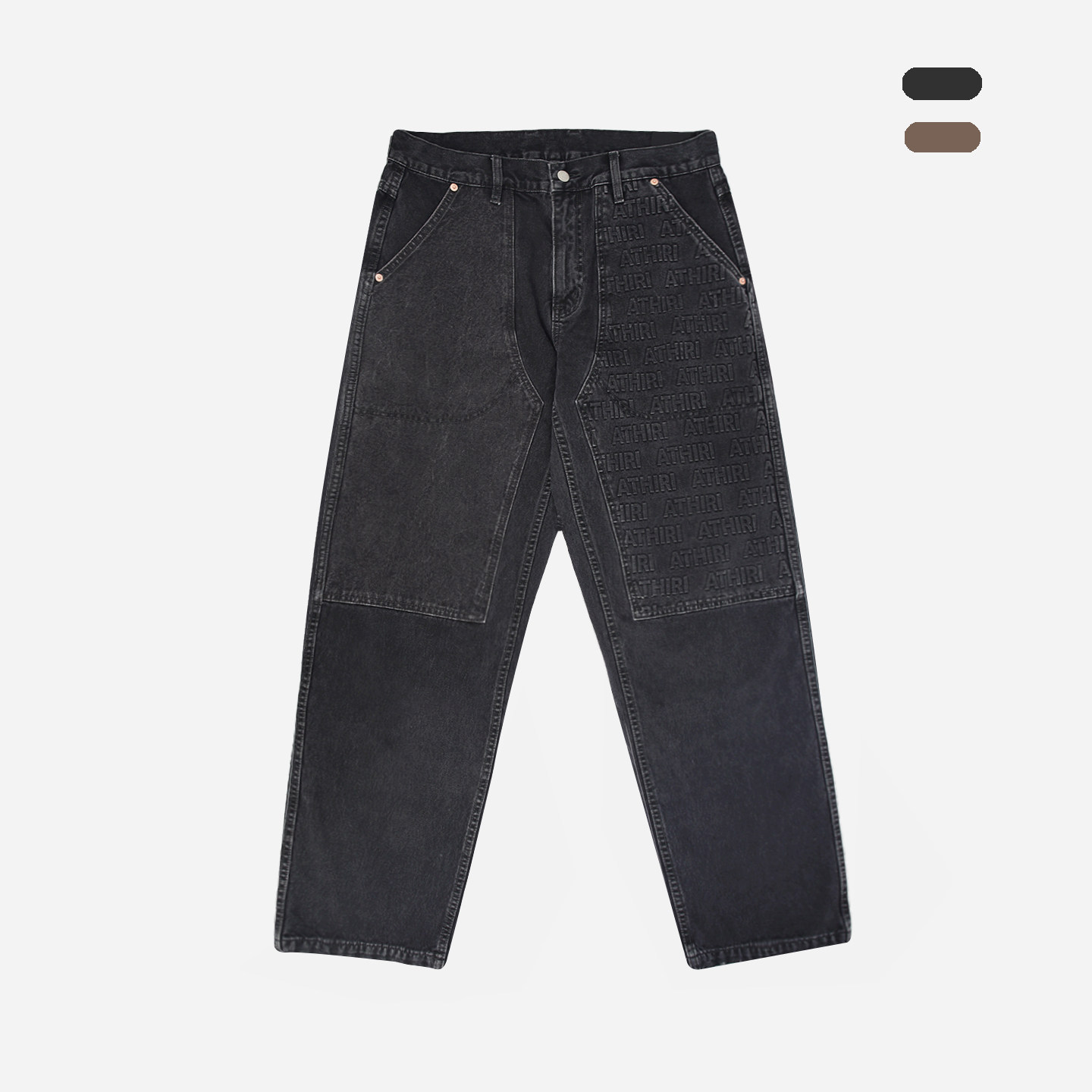 ATHIRI 3D钢印立体浮雕压花复古蜡染水洗做旧宽松直筒双膝伐木裤