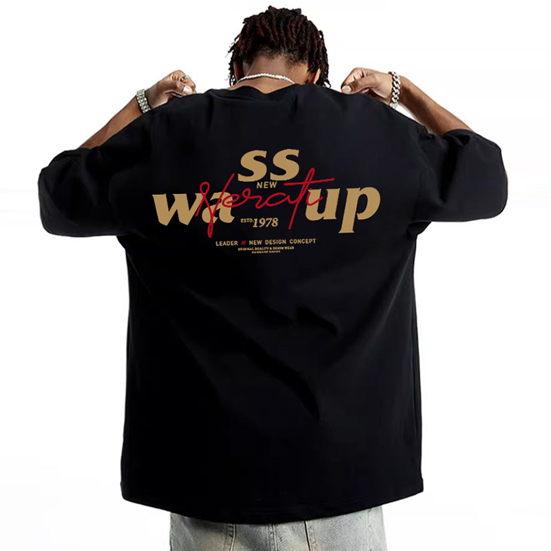 淘宝WASSUP HEODS 夏季短袖T恤男女情侣2024新款圆领宽松纯棉美式潮牌