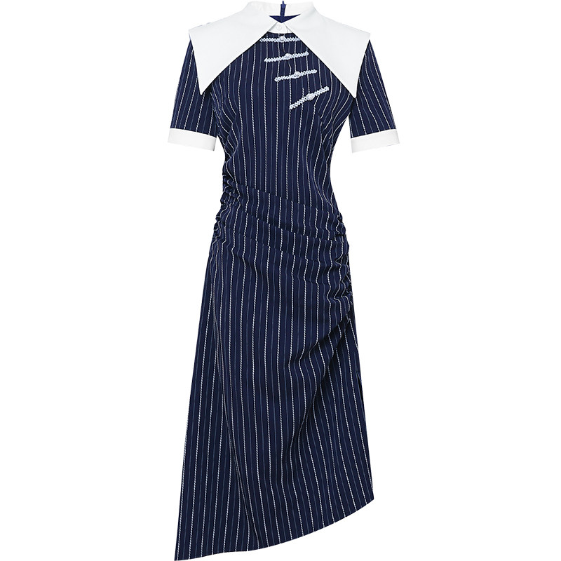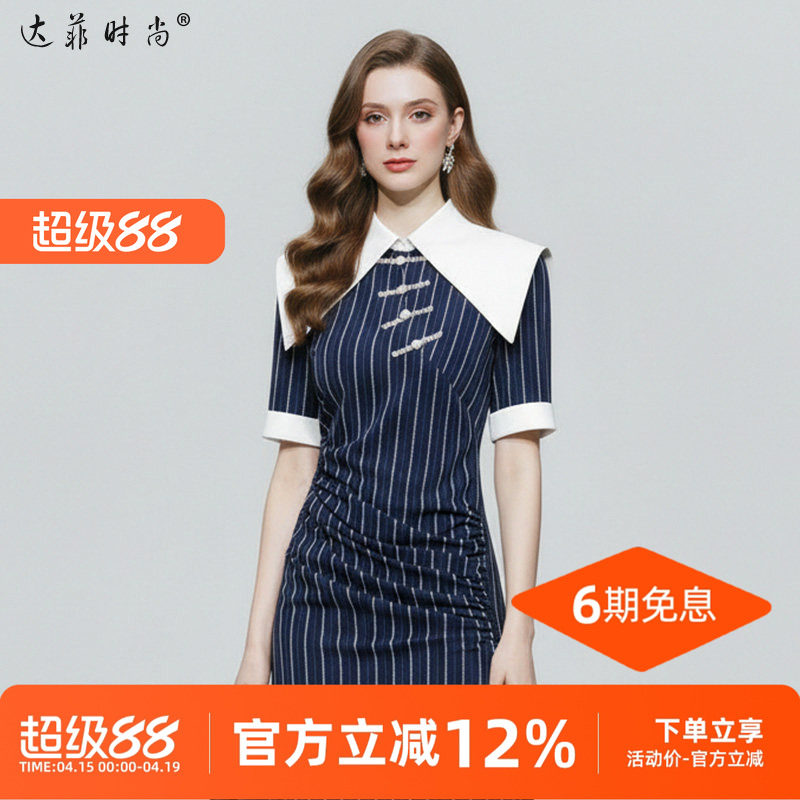 淘宝2026夏季新款国潮气质复古大翻领拼接修身中长款鱼尾连衣裙女装