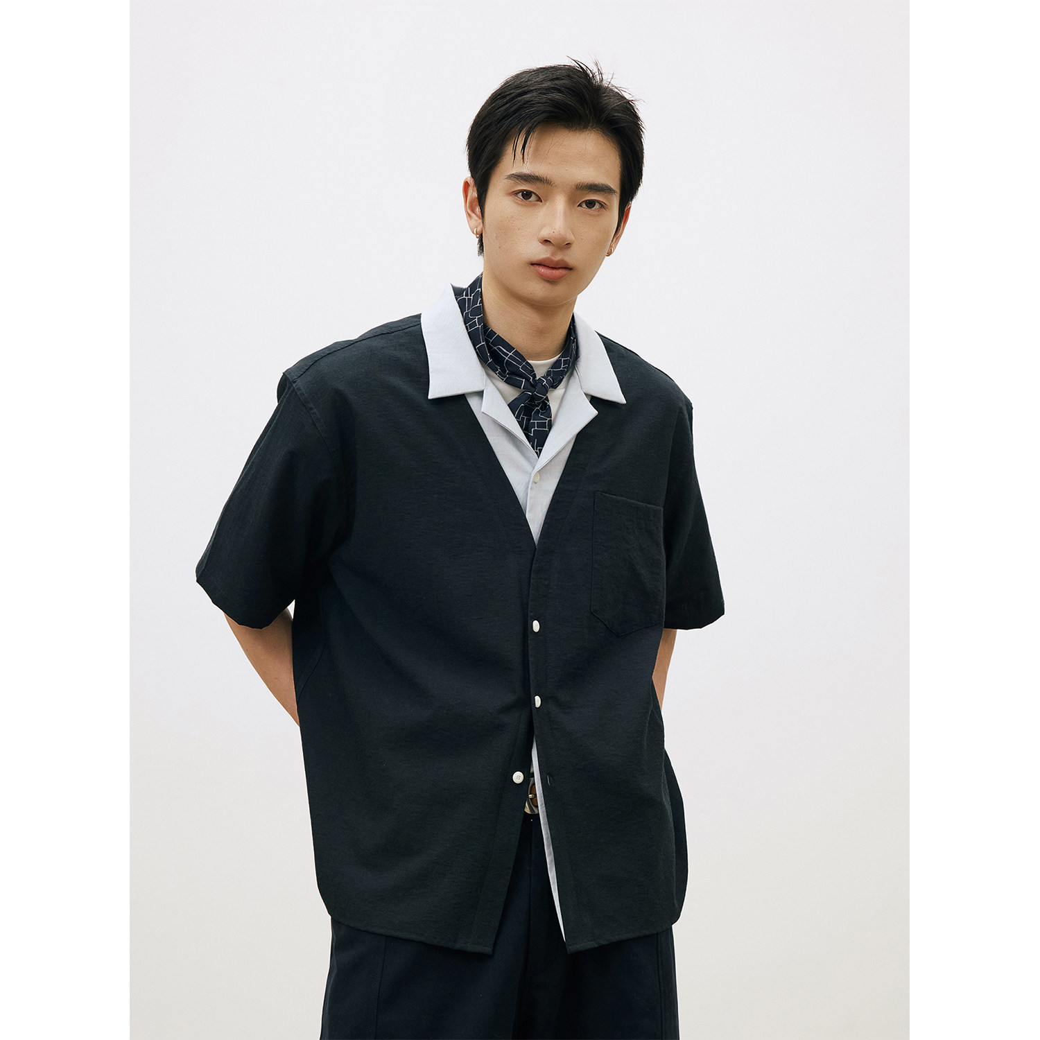 --------------------- LR MADE 26SS 撞色双层领 外层深V领 假两件古巴领抗皱短袖衬衫 【原售价】279元 【现售价】245元 【推荐理由】