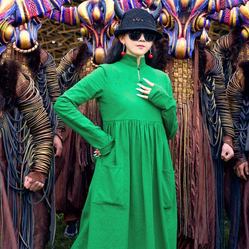杨丽萍官方原创设计雀云裳民族风国风高支棉长袖立领连衣裙女夏秋