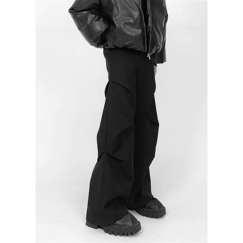 M7 美式高级cleanfit小众设计感褶皱宽松休闲阔腿微喇拖地长裤男