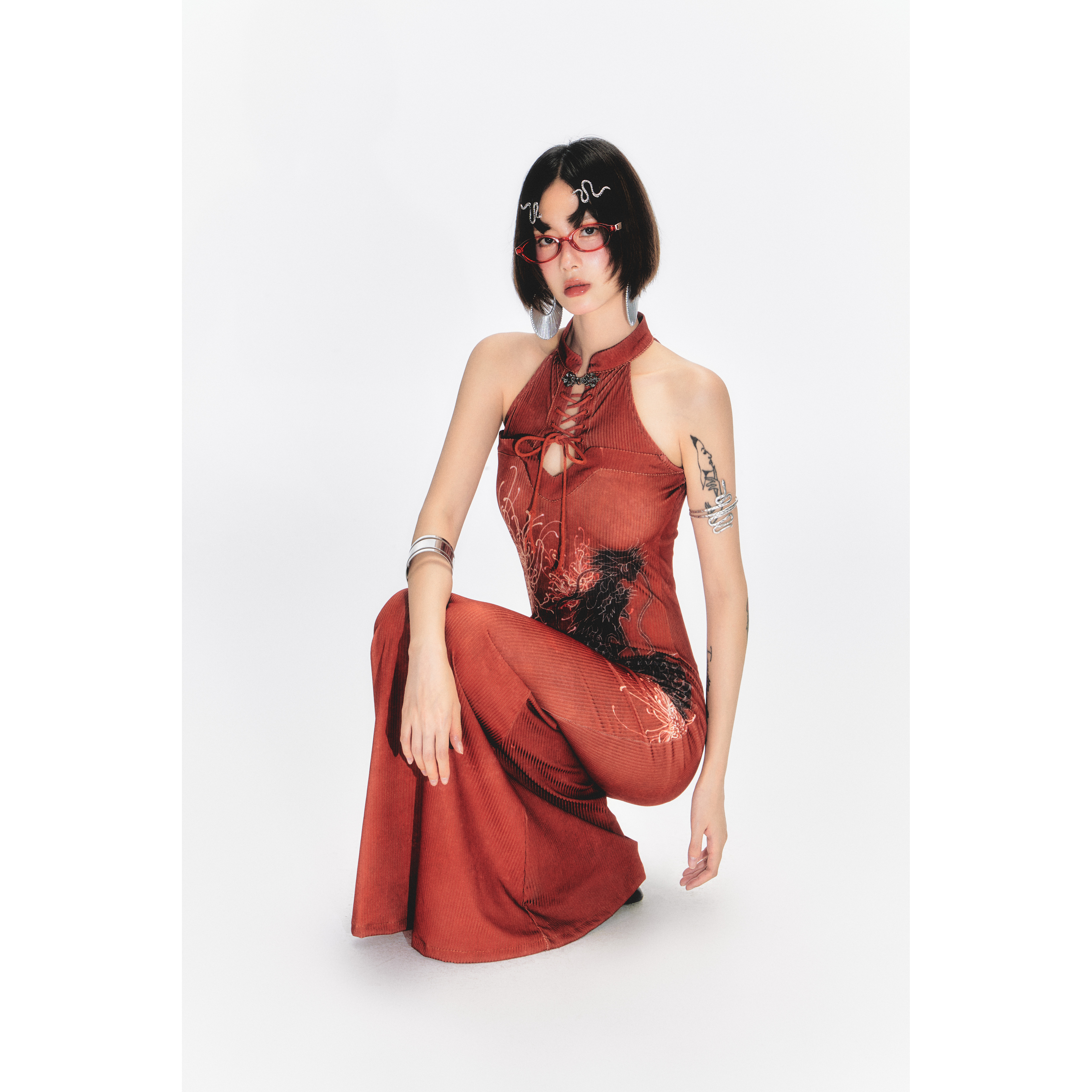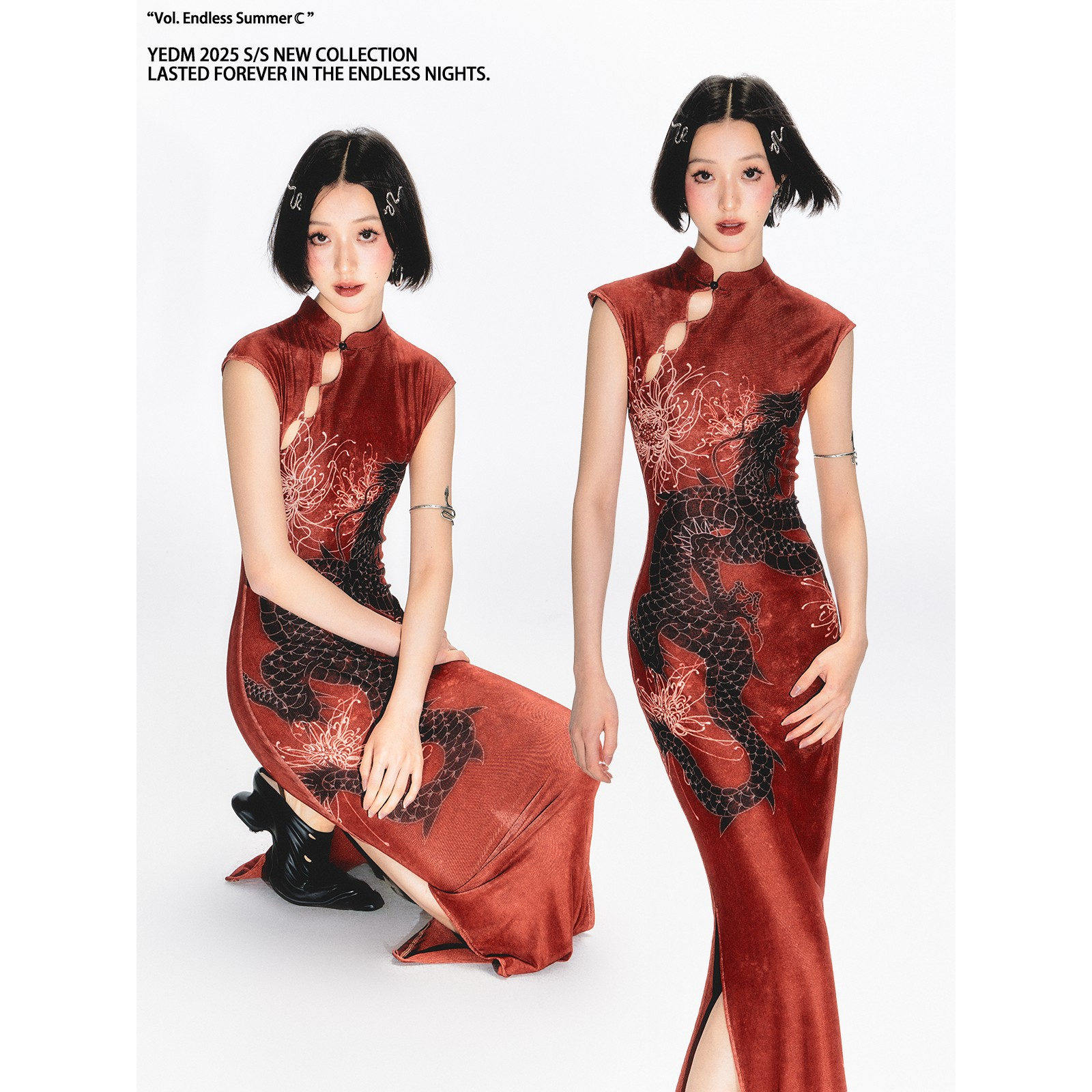 杨二大梦原创新中式龙纹印花旗袍裙女夏2026新款立领无袖连衣裙