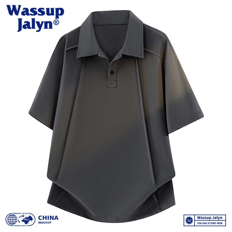 WASSUP JALYN复古通勤风翻领POLO衫T恤男夏季纯棉休闲百搭男短袖t