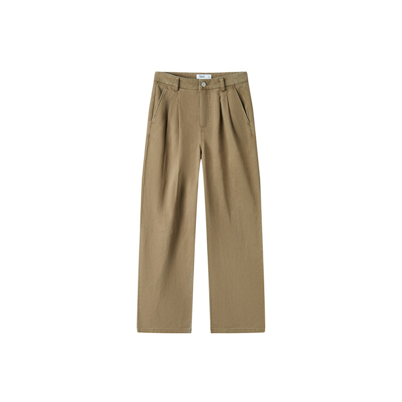 [商场同款]森马休闲裤女纯棉阔腿裤简约2025新款秋季做旧长裤复古