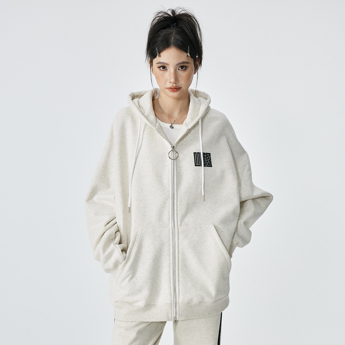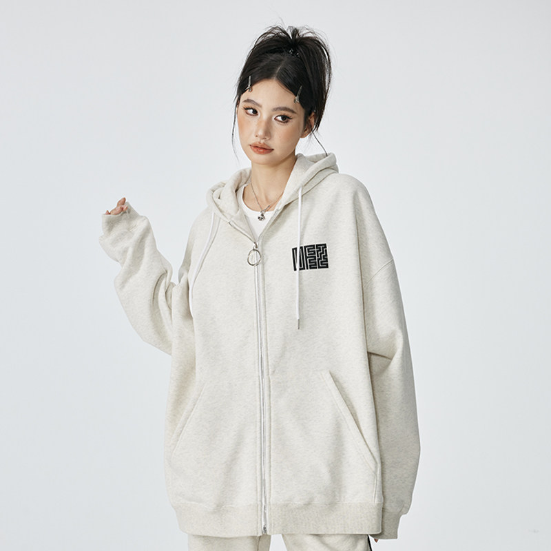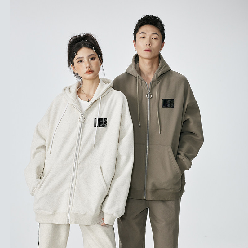 淘宝UFZ重磅500g「九叠篆国潮官印」情侣连帽卫衣男宽松潮牌美式开衫