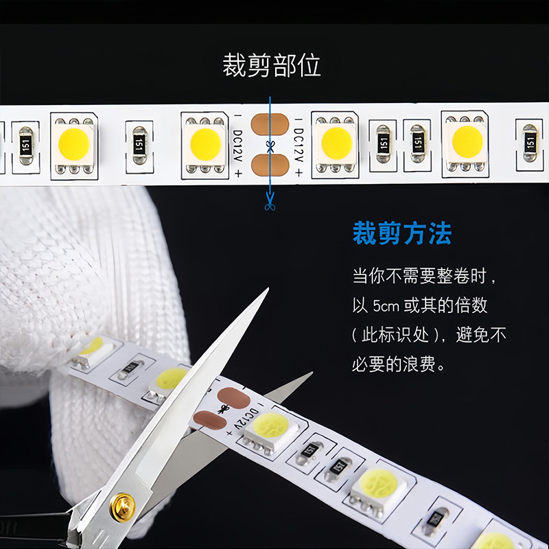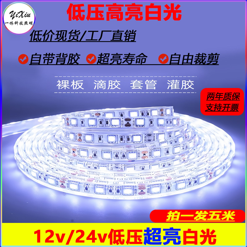 LED灯带贴片5050低压12v自粘高亮白光24v线性灯条柜台户外防水灯