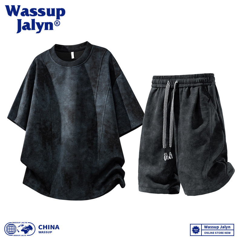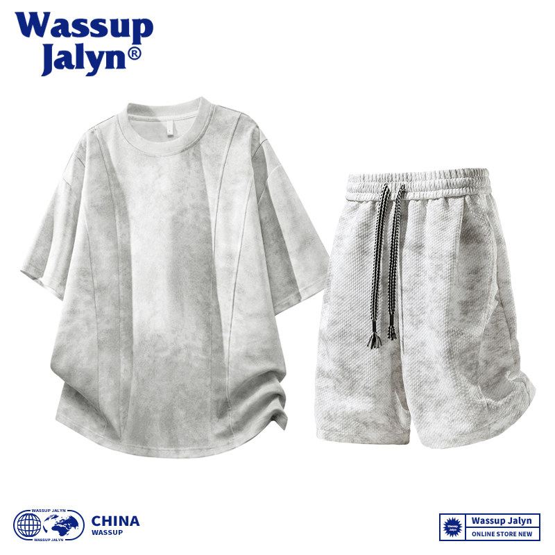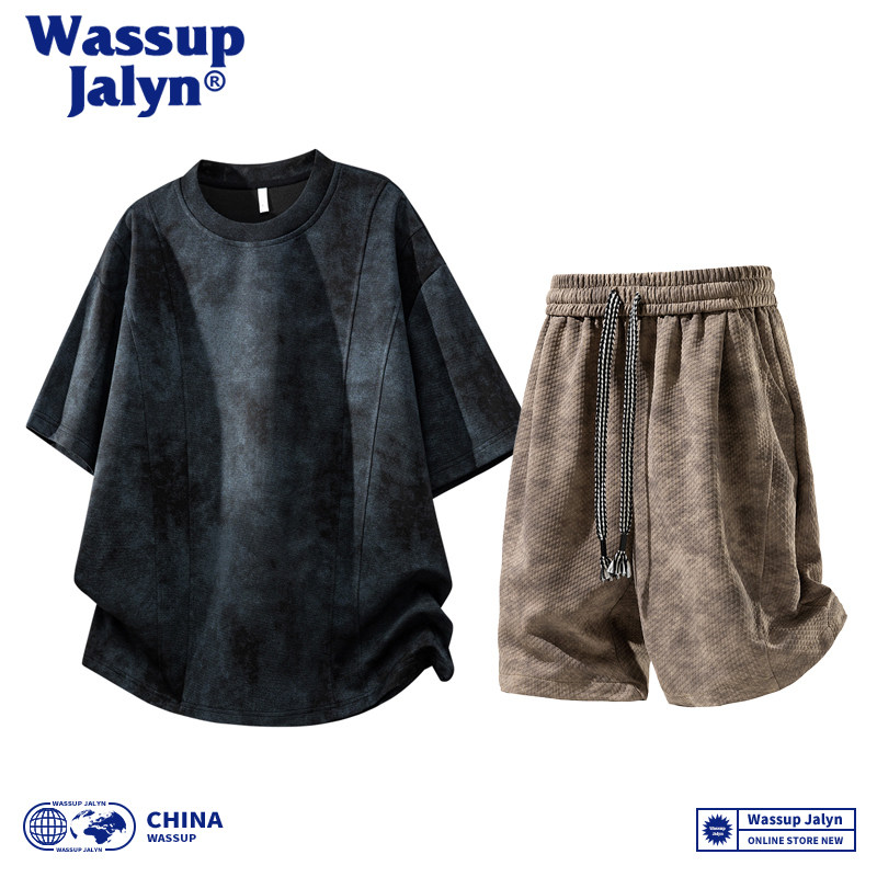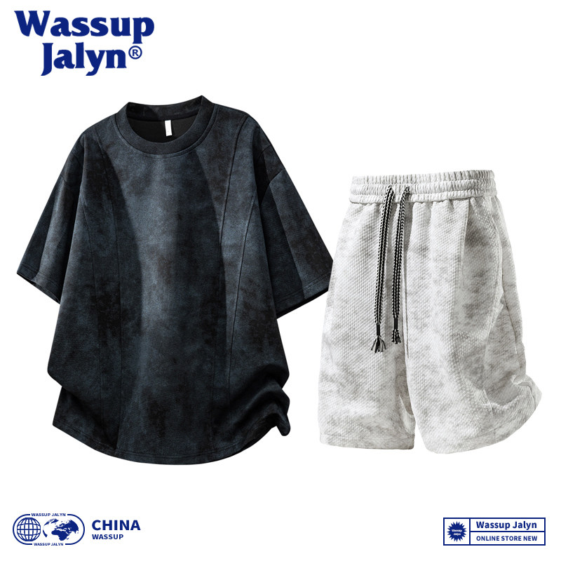 WASSUP JALYN扎染运动套装男夏季宽松休闲短袖短裤两件套痞帅潮牌