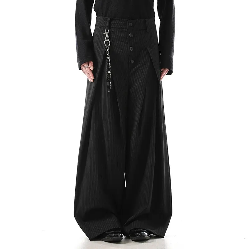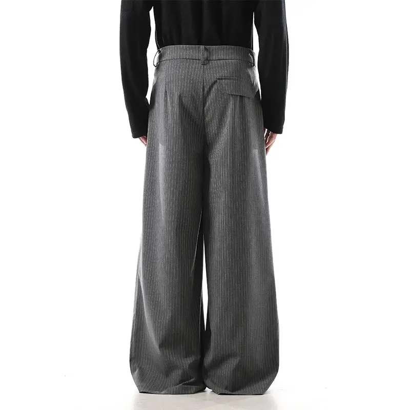 SenaRed原创设计打褶条纹A字老钱风西裤宽松阔腿休闲西装裤子男