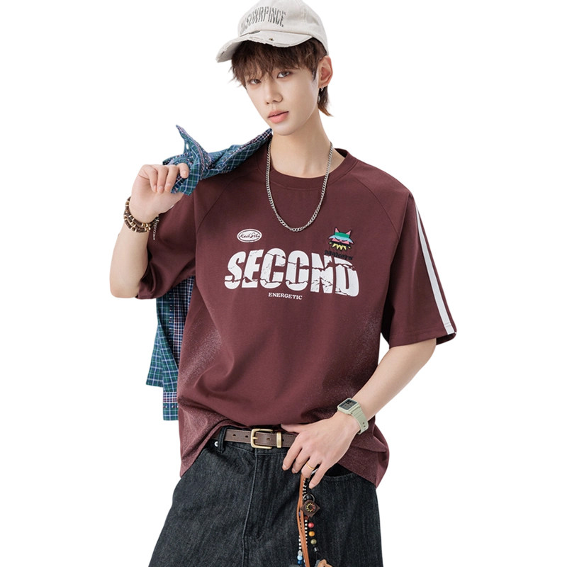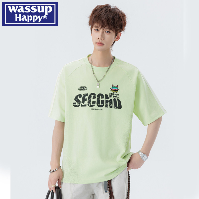 wassup happy美式条纹字母印花冰丝短袖t恤男士夏季休闲圆领上衣