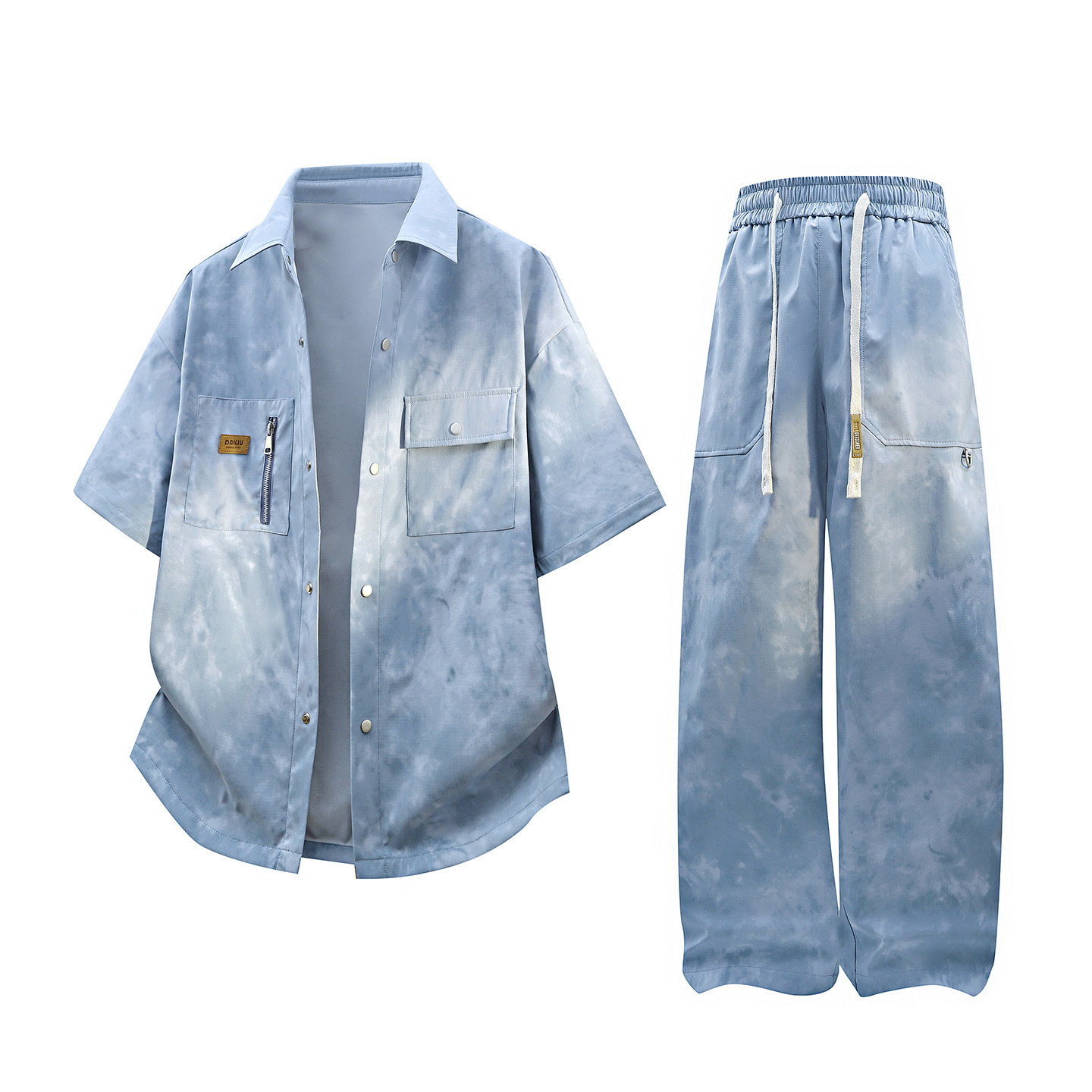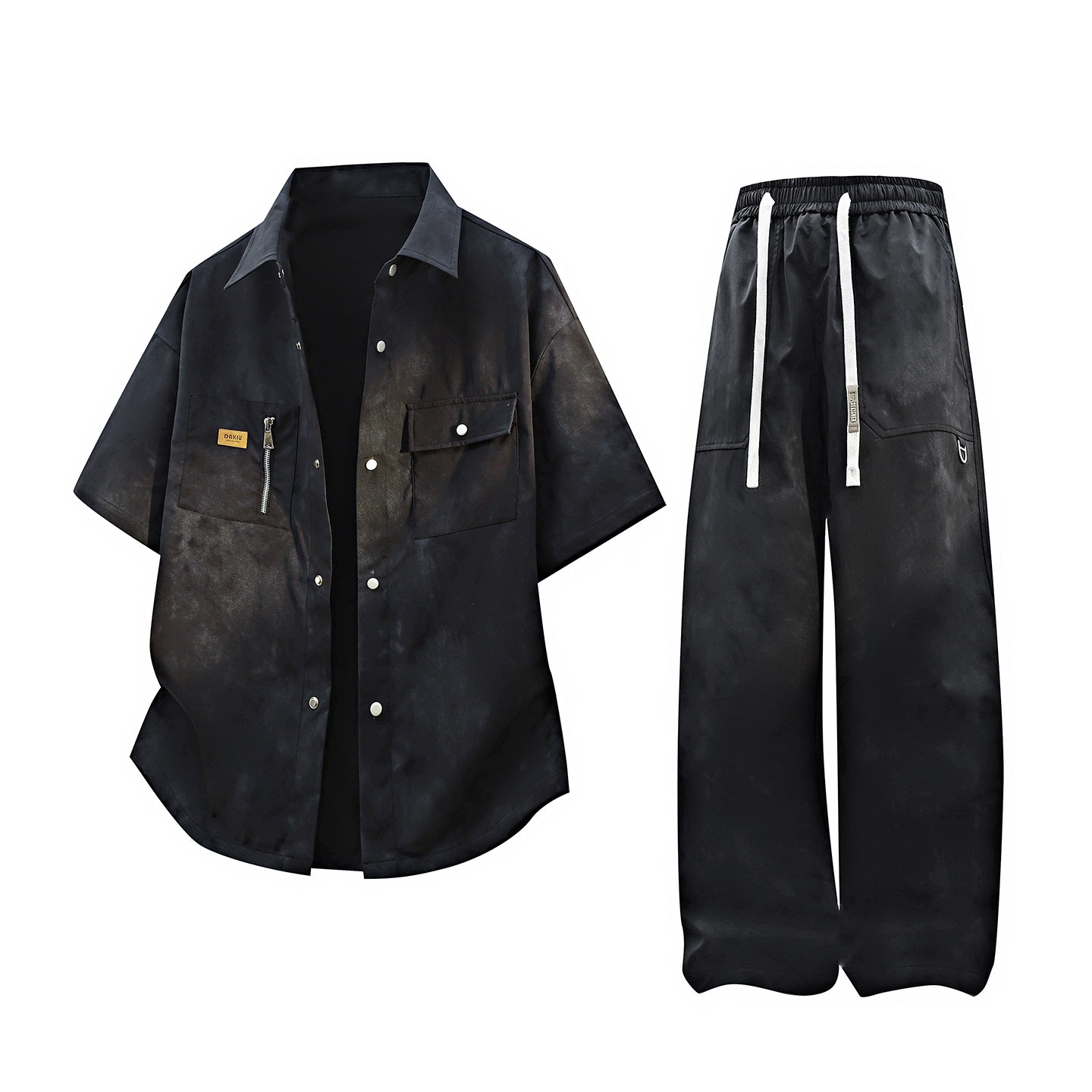 唐狮集团DESSO夏季青少年短袖衬衫长裤两件套宽松运动休闲套装男