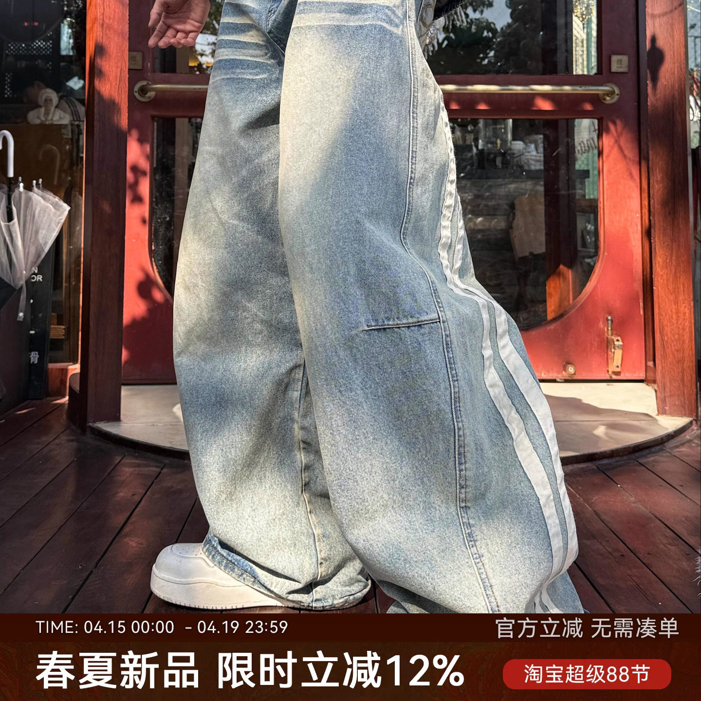 --------------------- 浅蓝色牛仔裤男宽松水洗美式宽松阔腿弯刀裤贴布情侣潮牌ins韩系 【原售价】188元 【现售价】159元 【推荐理由】