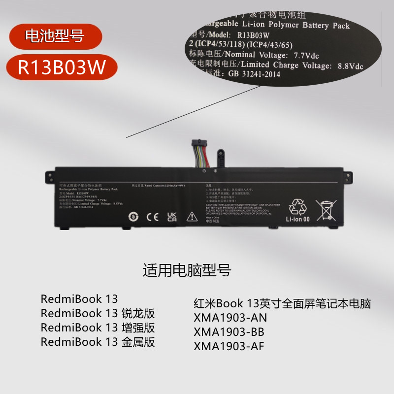 适用于小米红米Book 13英寸 XMA1903-AF -BB R13B03W 笔记本电池
