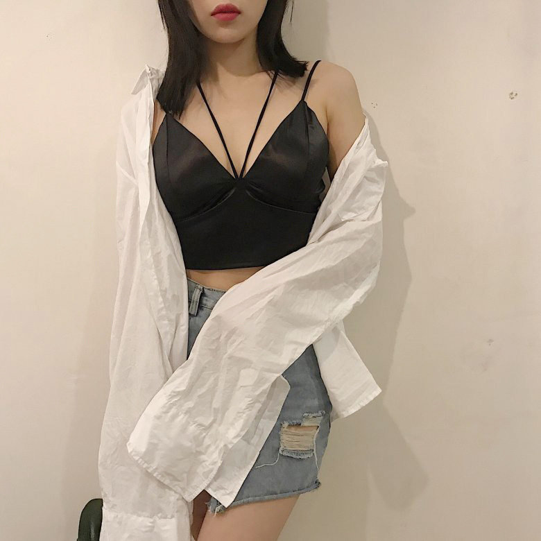 淘宝辣妹挂脖美背吊带内搭抹胸内衣带胸垫裹胸外穿打底小背心短款上衣