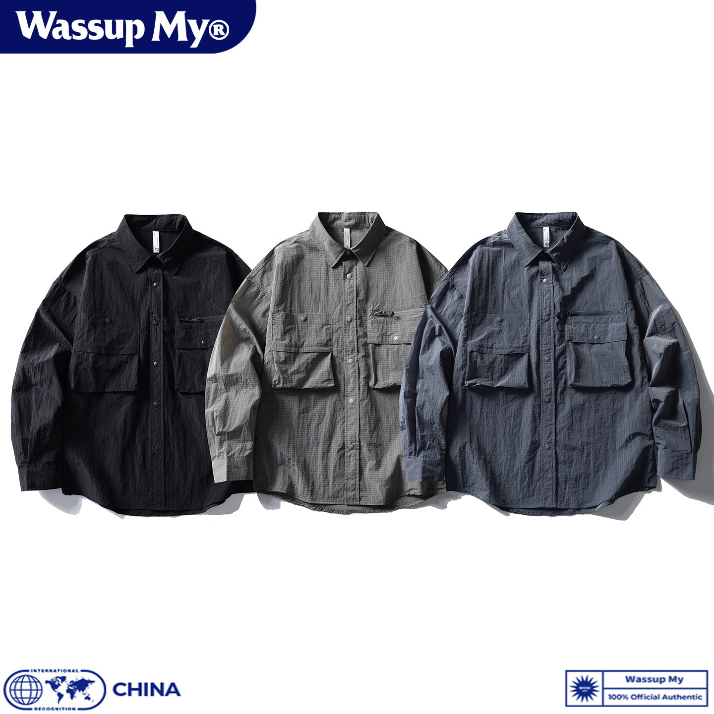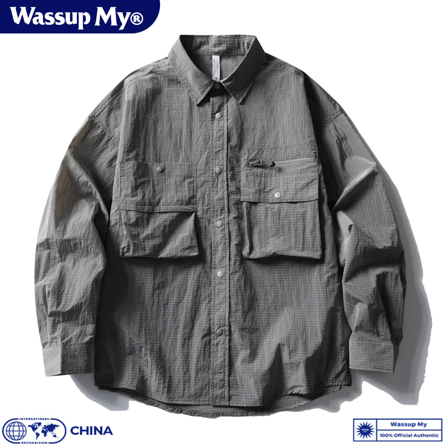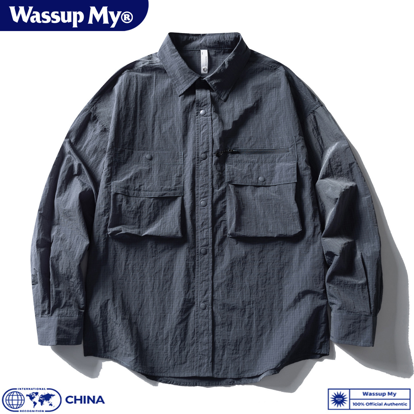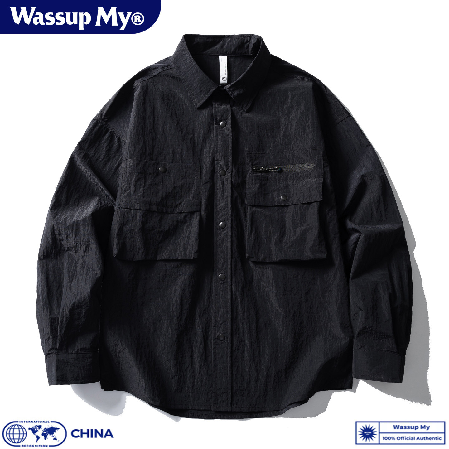 Wassup My山系复古工装大口袋长袖衬衫男初秋休闲宽松衬衣外套潮