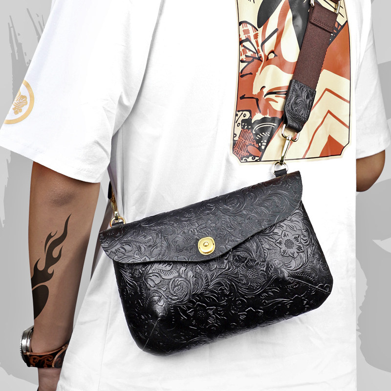 国潮手作牛皮单肩斜挎包男女真皮情侣背包休闲复古手拿包小手机包