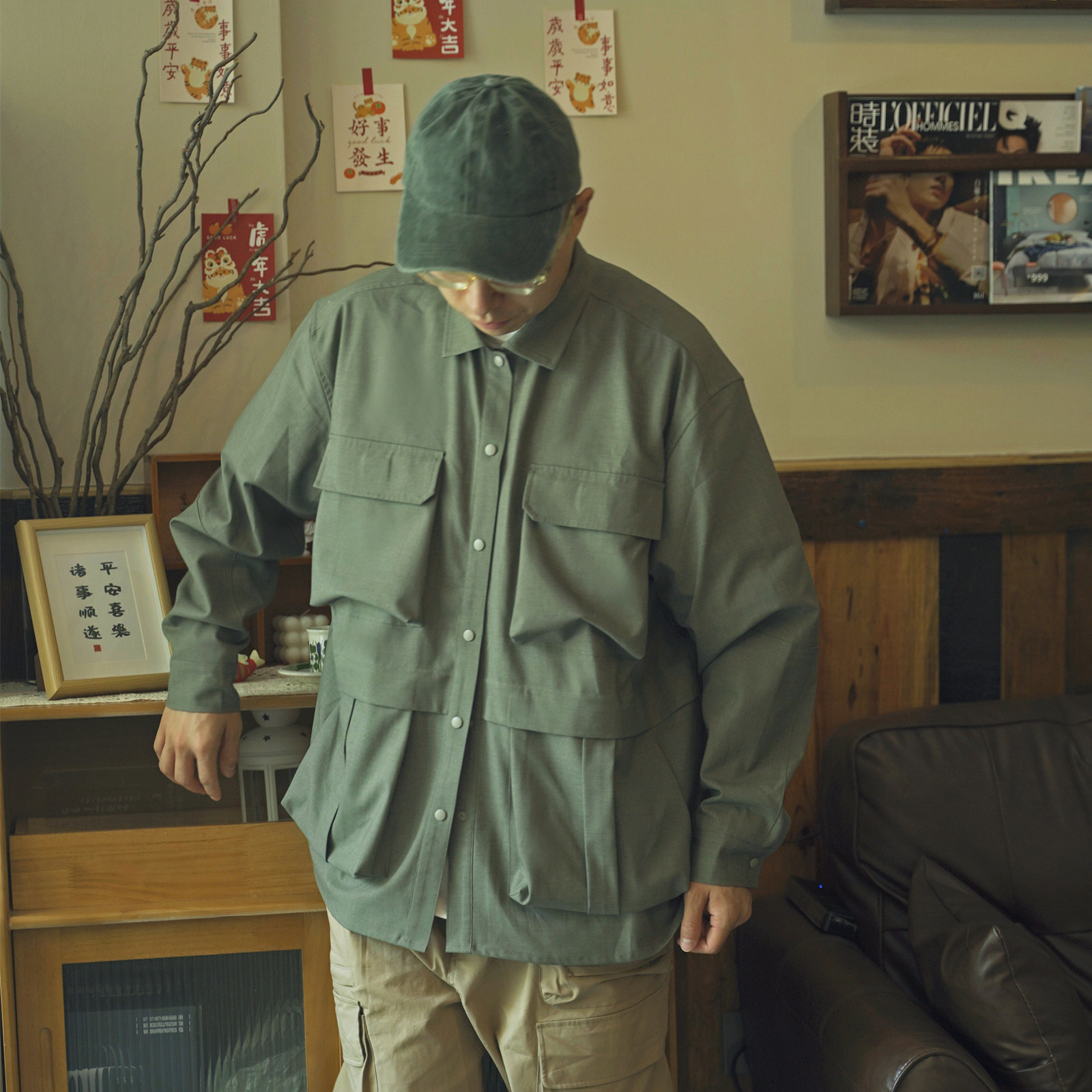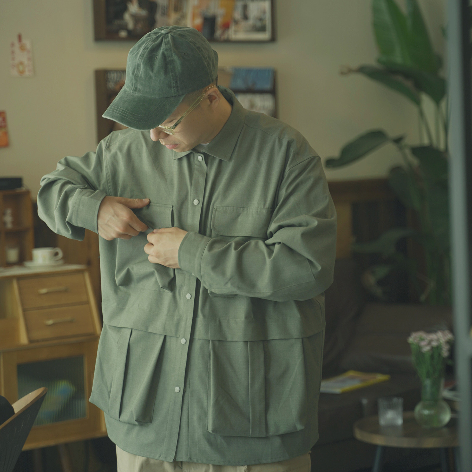 REBRITH四袋工装衬衫日系复古简约纯色宽松廓形春秋长袖休闲外套