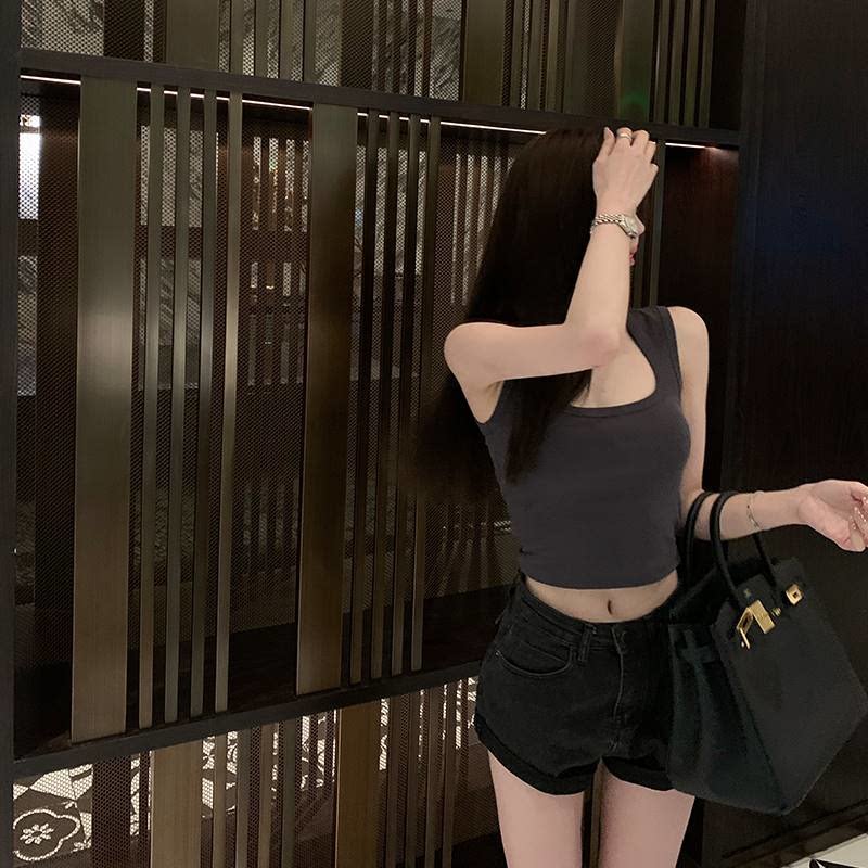 titi小姐姐 大奶背心 大方领基础纯色工字吊带背心修身短款上衣女