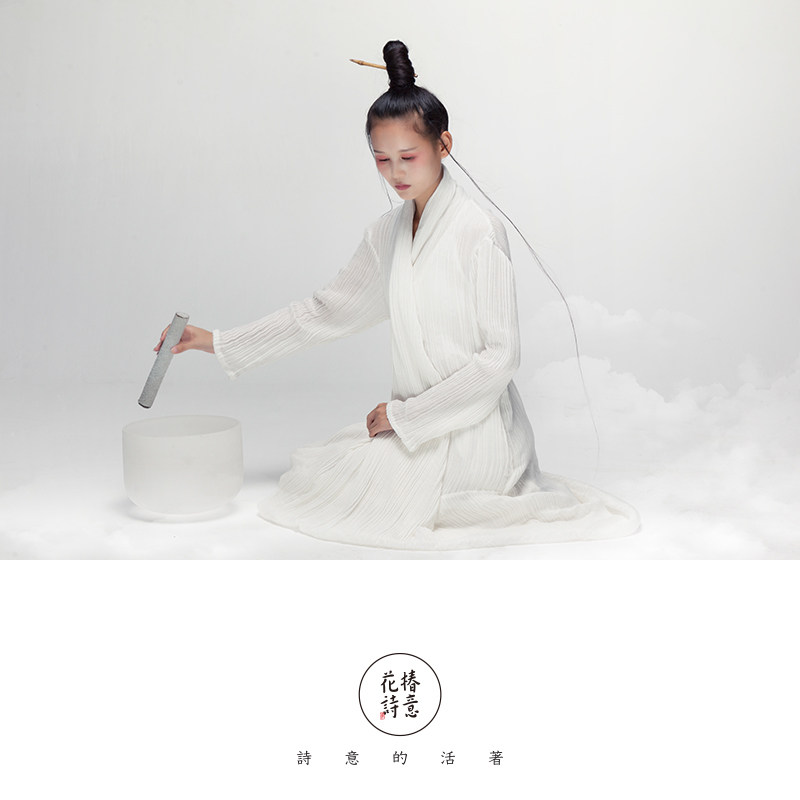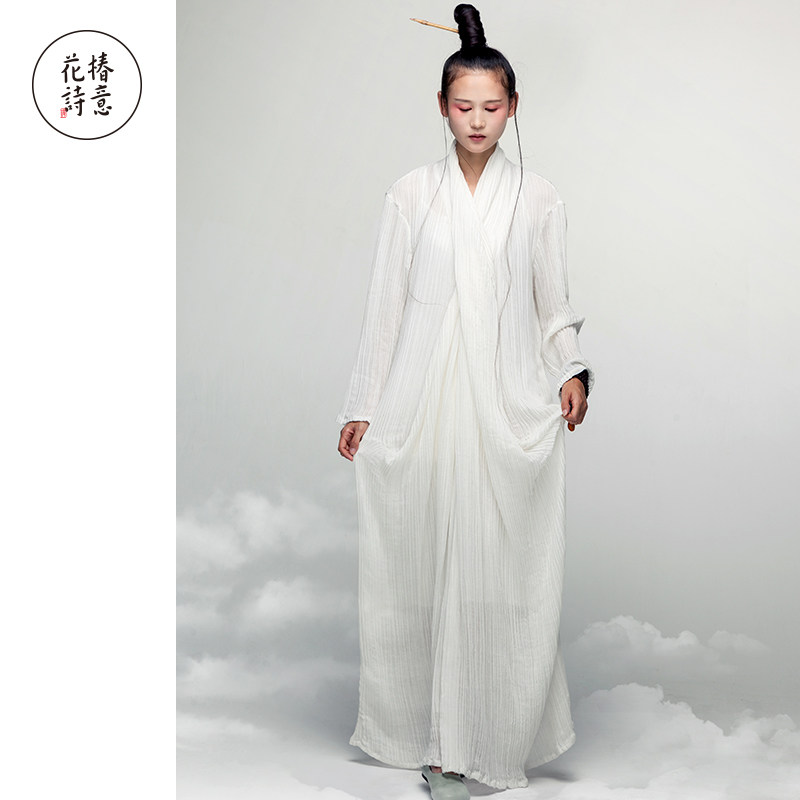 淘宝花椿诗意禅服女白色长裙仙气质显瘦 交领长袖复古文艺长款连衣裙