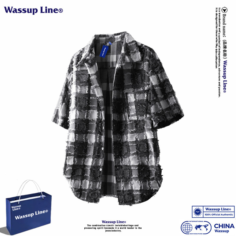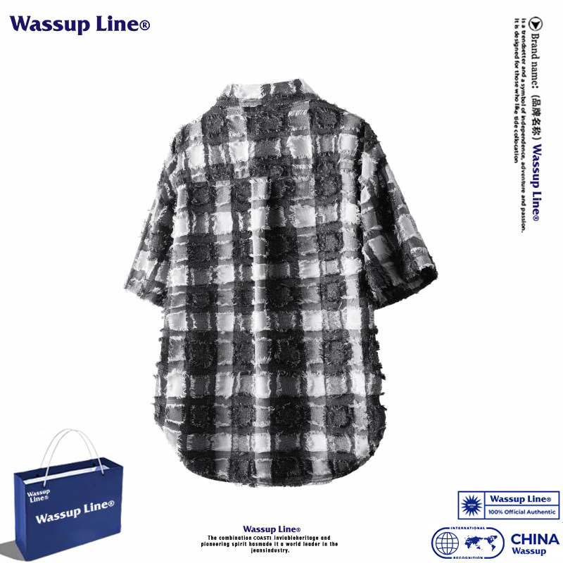 WASSUP Line潮牌夏季流苏格子短袖衬衣男毛边高级感宽松休闲衬衫