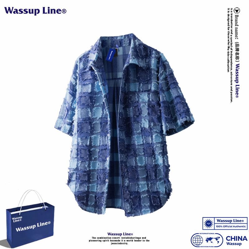 --------------------- WASSUP Line潮牌夏季流苏格子短袖衬衣男毛边高级感宽松休闲衬衫 【原售价】398元 【现售价】59.8元 【推荐理由】