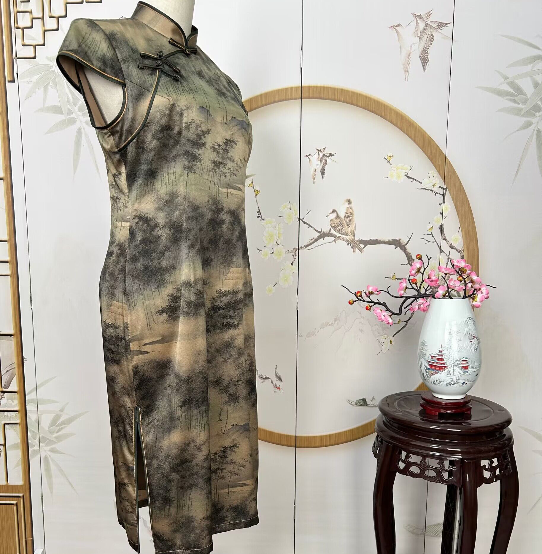 --------------------- 水墨印染2026新款夏季真丝中长款复古老上海古典日常年轻款旗袍裙 【原售价】458元 【现售价】403元 【推荐理由】