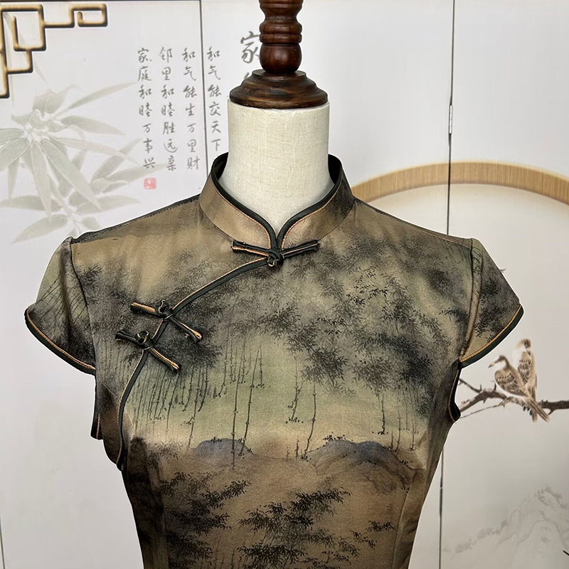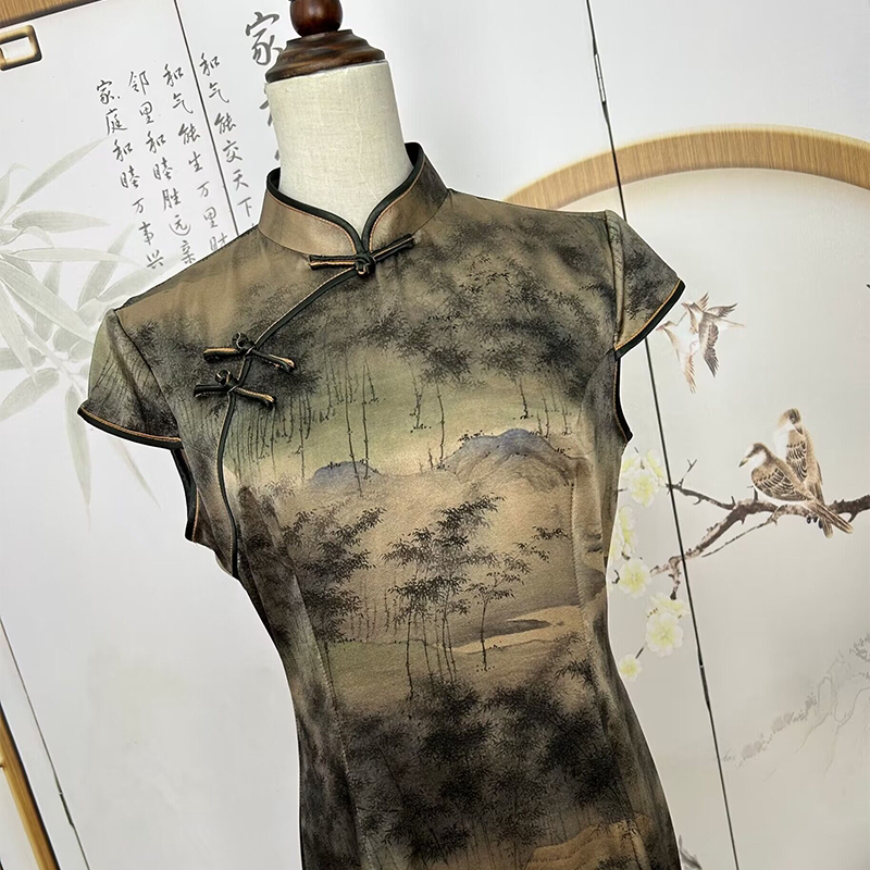 水墨印染2026新款夏季真丝中长款复古老上海古典日常年轻款旗袍裙
