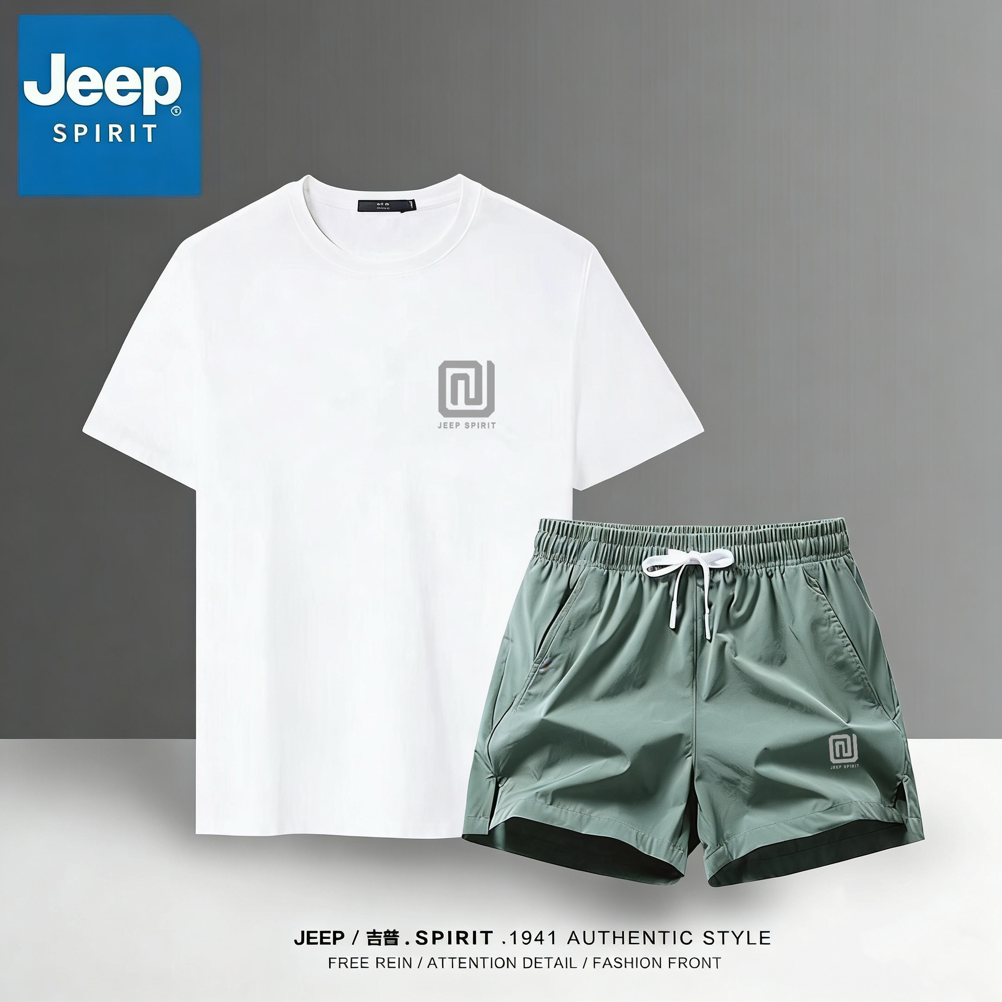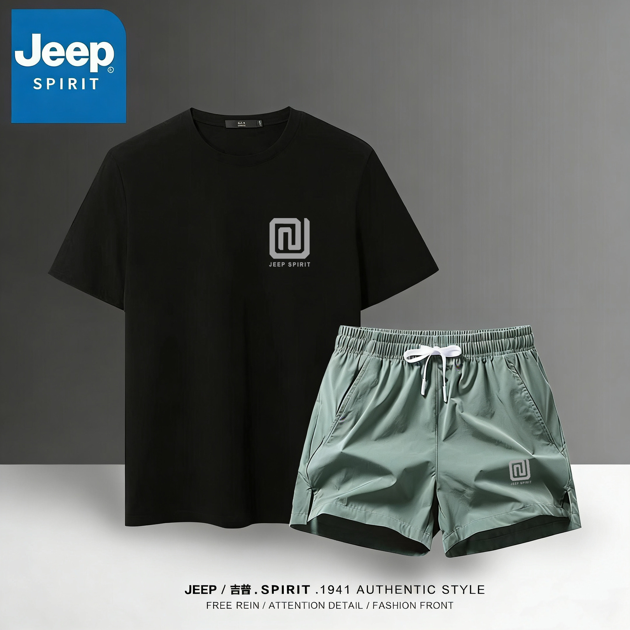 JEEP吉普男士冰丝夏季速干休闲T恤健身跑步吸汗运动套装短裤透气