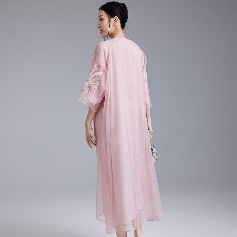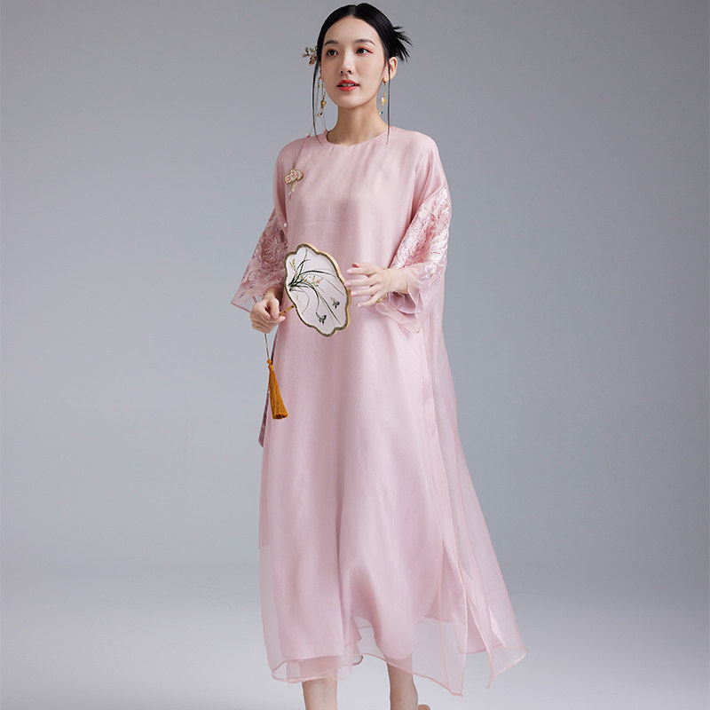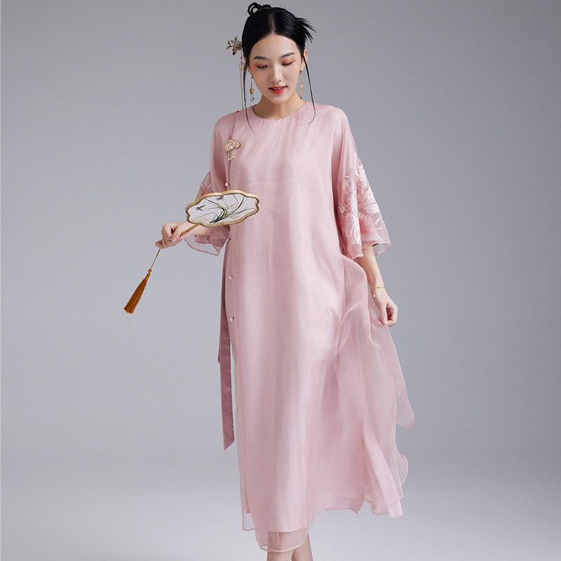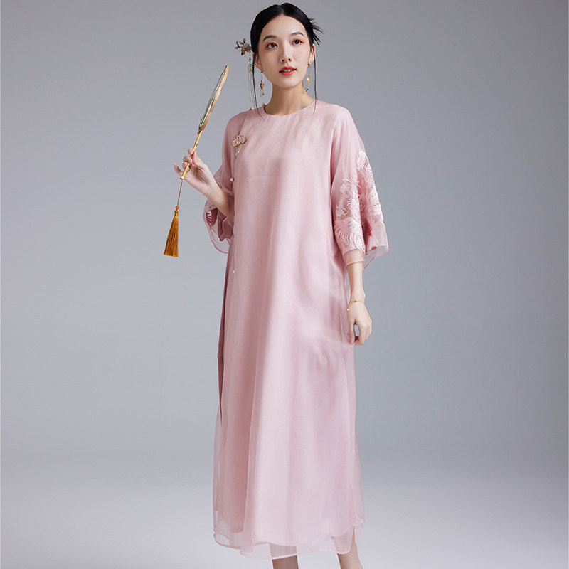陌遇2025年春夏新款国潮复古改良真丝绣花旗袍裙温柔风超仙连衣裙