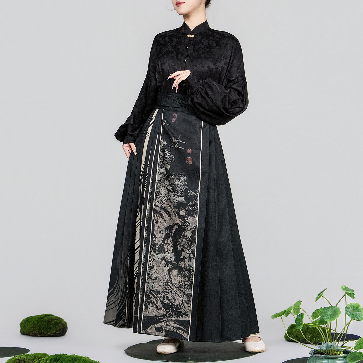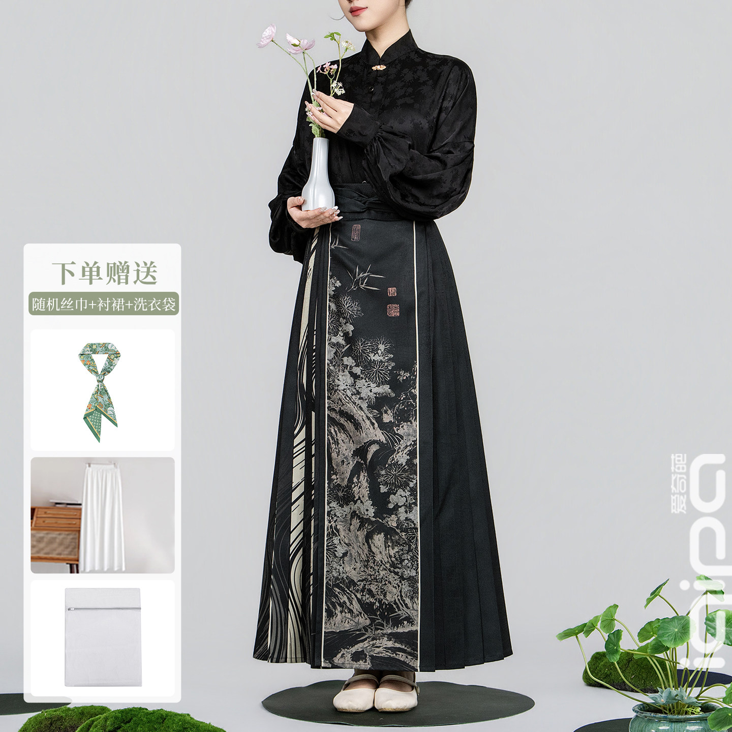 --------------------- 爱奇葩iqipa 新款水墨晕染中式国潮马面裙女黑色高级汉服半身裙 --------------------- --------------------- 【原价】1739元 【券后价】829.5元