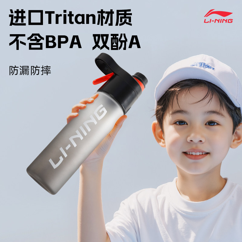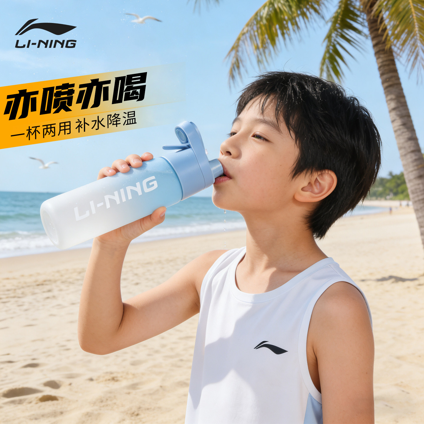 李宁儿童夏季运动喷雾水杯随手杯降温补水上学学生水壶高颜值跑步