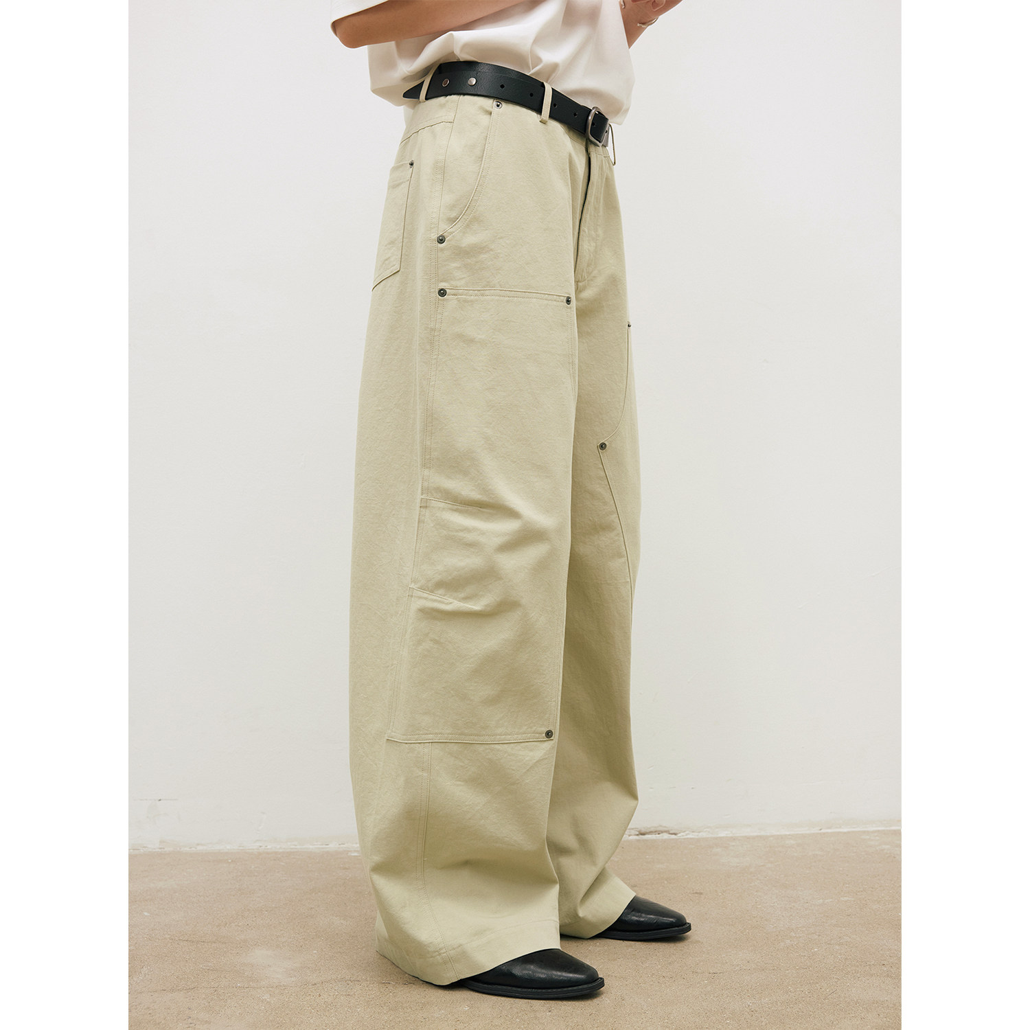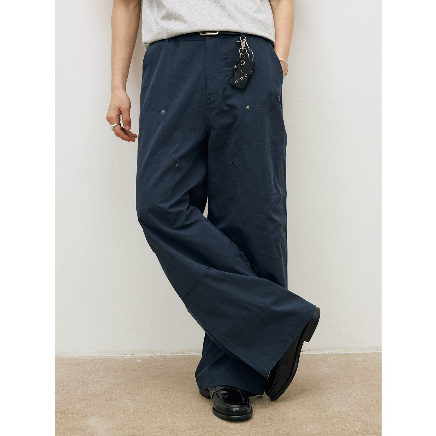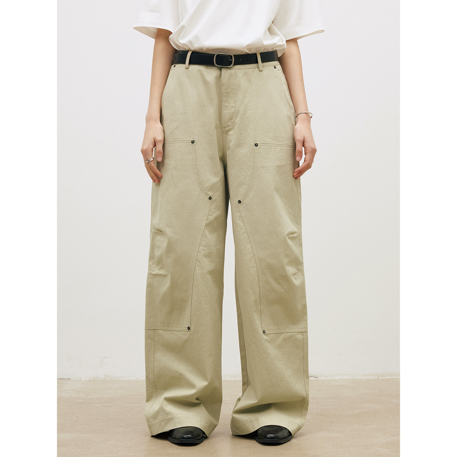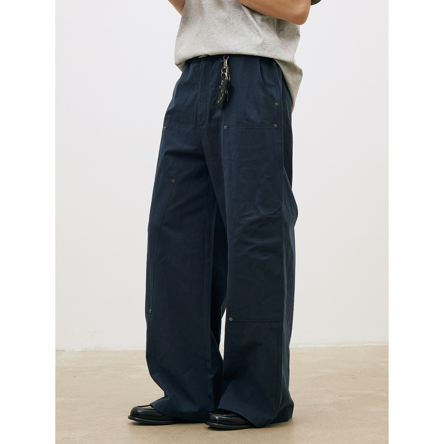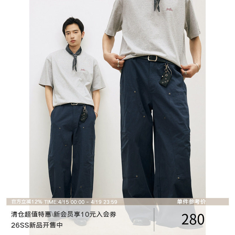 LR MADE 26SS 古银铆钉伐木裤 麻感竹节棉 双膝工装直筒休闲长裤