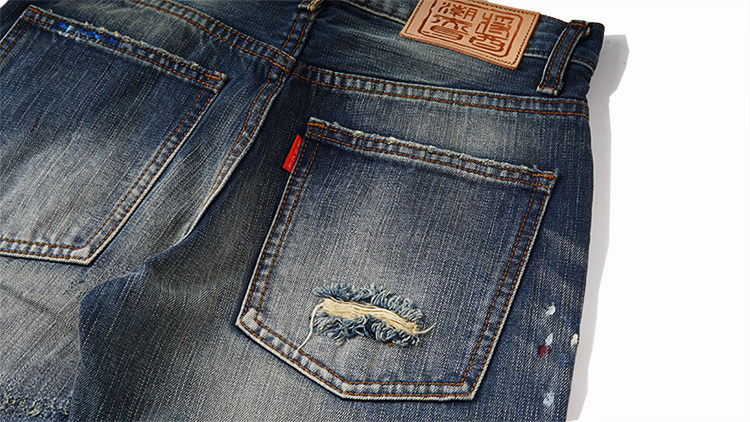 高端手工磨烂猫须直筒牛仔裤男赤耳单宁深度洗水潮牌ZC酱潮赤耳
